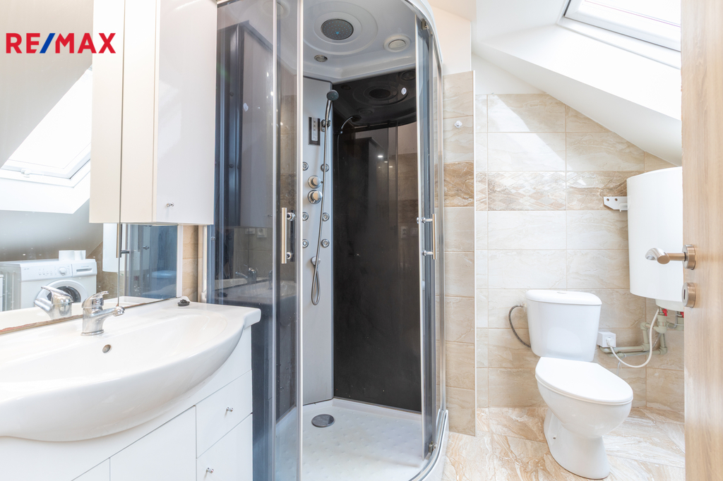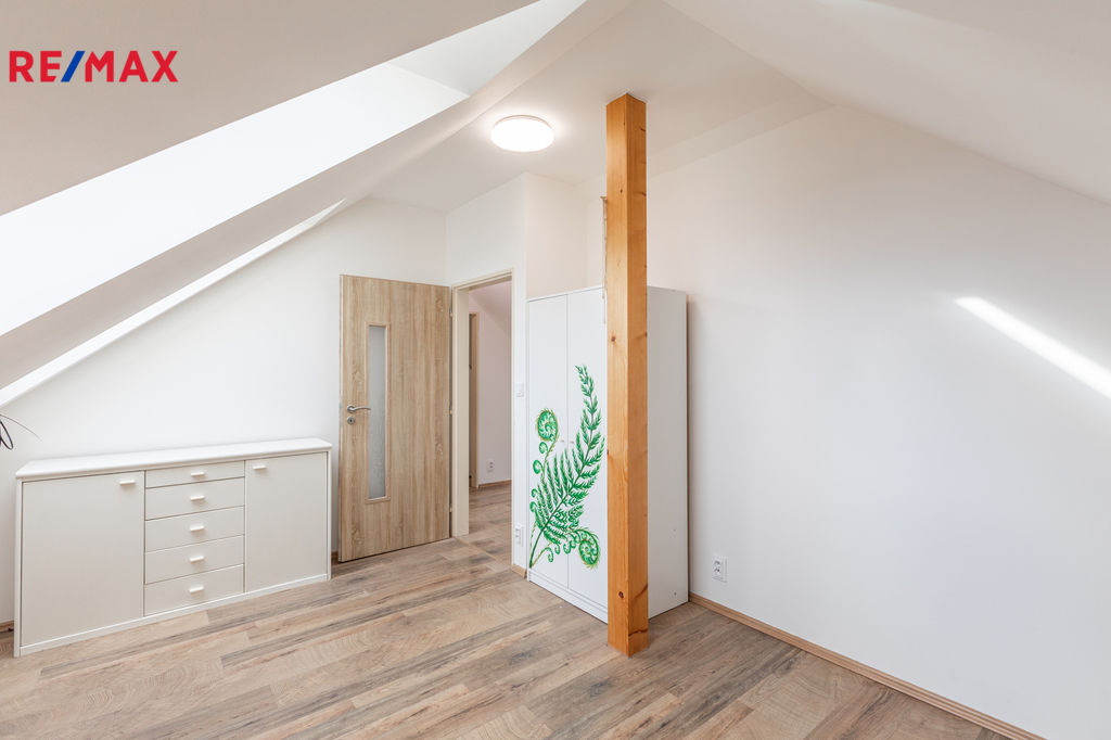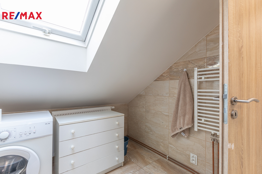 Byt se nachází podkroví rodinného domu po rekonstrukci se dvěma dalšími bytovými jednotkami v širším centru Radotína, s perfektní dostupností obchodů (Albert, Teta, Billa a další) i nového nádraží, ze kterého jede klimatizovaný vlak na metro Smíchovské nádraží pouze 7 minut, ve špičce každých 10 minut. V okolí dále skvělá restaurace Velo, Biotop, krytý bazén, velké množství sportovišť, kino atd.