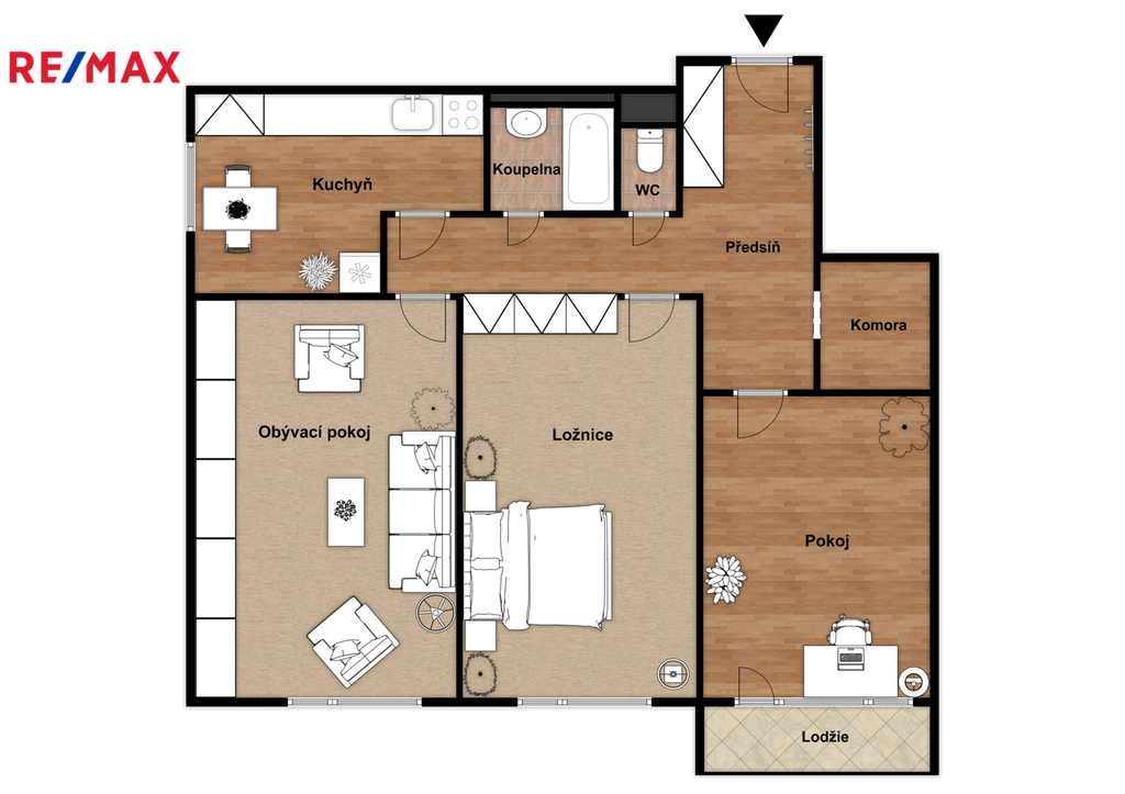 - předsíň: nadstandardně prostorná se 2 vestavnými skříněmi, vstup do bytu bezpečnostními dveřmi