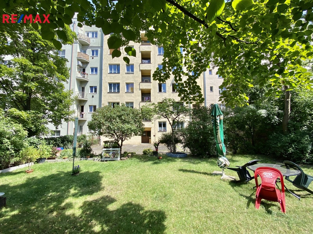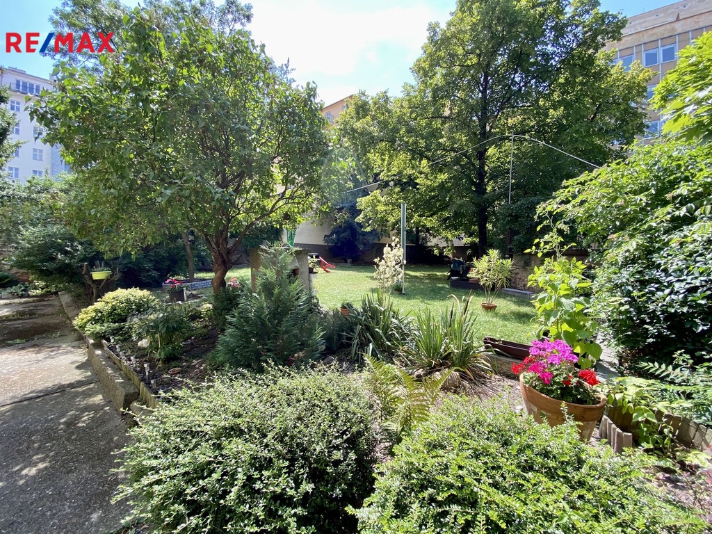 Byt je velice světlý a tichý s orientací na západní stranu do zeleného vnitrobloku s výhledem do vlastní velké zahrady, kterou je možné využívat k posezení a relaxaci.