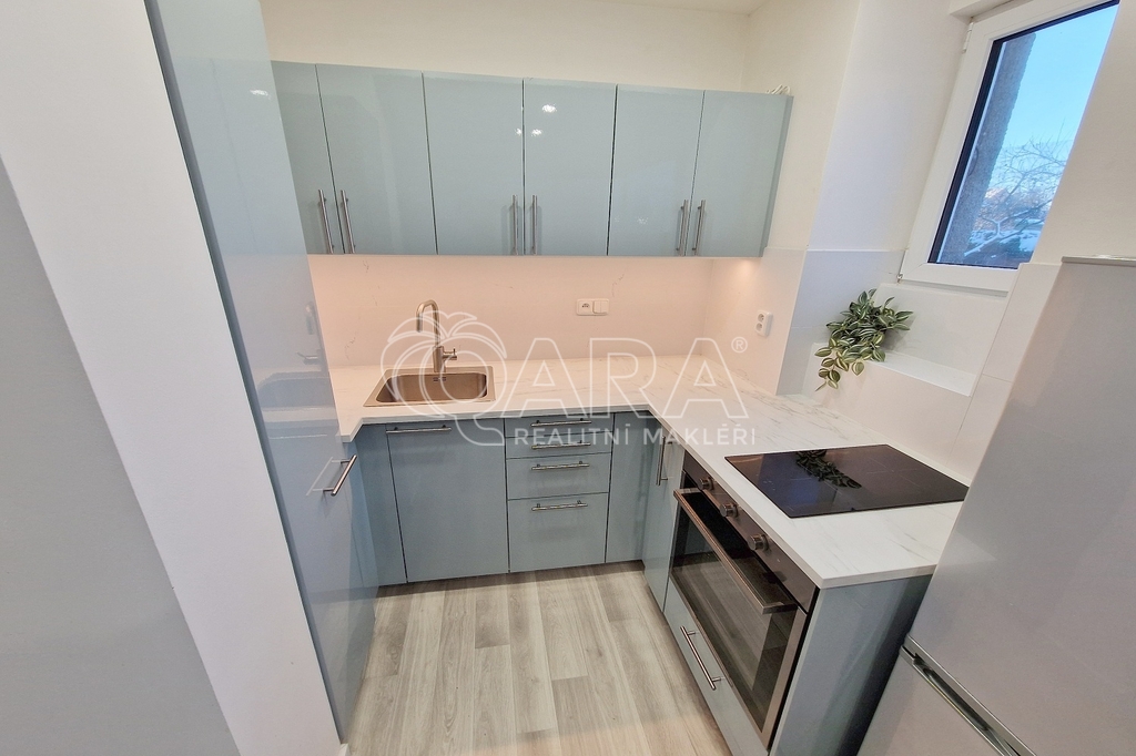 Pronájem pohodového bytu 1+kk (29 m2) po kompletní rekonstrukci, Praha 4 - Krč. V bytě je předsíň, prostorný pokoj s kuchyňským koutem (23 m2) a koupelna s sprchovým koutem a WC. Byt je vybavený novou kuchyňskou linkou s vestavěnou troubou, indukční varnou deskou, lednicí a pračkou. Velká okna s výhledem do klidné zeleně. Ohřev vody zajišťuje elektrický bojler, topení elektrický přímotop a elektrický žebřík v koupelně. Na podlahách vinyl a dlažba. K bytu patří sklep (1,5 m2) a dále je k dispozici společná kolárna. Třípodlažní bytový dům je v klidné zástavbě rodinných domů nedaleko Kunratického lesa. Bezproblémové parkování v ulici, výborné dopravní spojení - autobusová zastávka Jalodvorská 5 minut chůze od domu a dále 10 minut na metro C Kačerov. Měsíční poplatky 1.500,-Kč plus elektřina. Jistota 35.000,-Kč. Provize RK 21.000,-Kč vč. DPH. Byt je ihned k nastěhování. Volejte a domluvte si prohlídku.