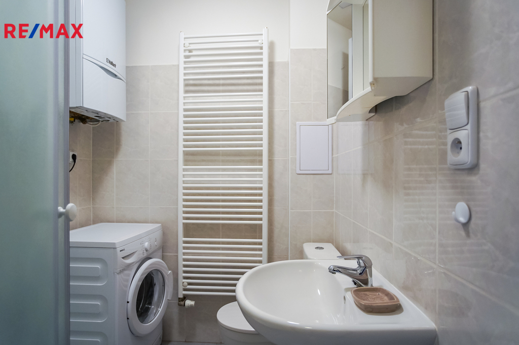 Dům je udržovaný, ve velmi dobrém stavu. Byt má příjemnou koupelnu se sprchou, vybavenou kuchyni vč. lednice a varné desky. V koupelně je kombinovaný plynový kotel.