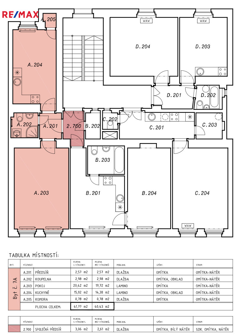 | Dispozice/podlahová plocha: | 1+1/40 m² |