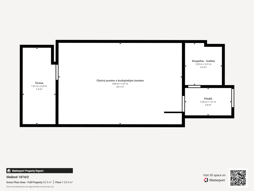 | Dispozice/podlahová plocha: | 1+kk/44 m² |