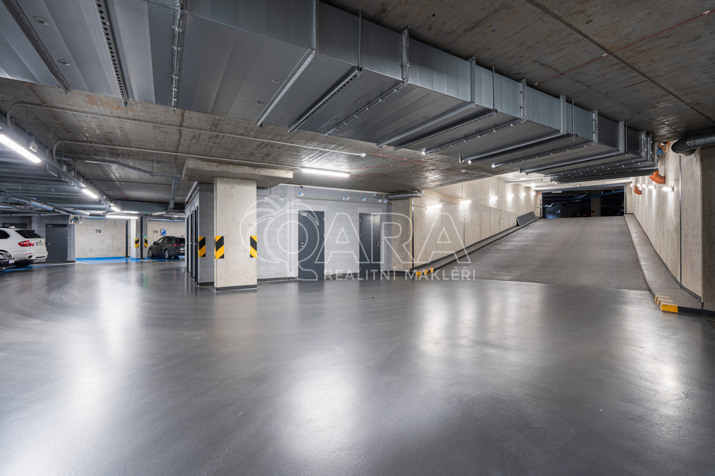 K bytu náleží také sklepní kóje, která je umístěna v garáži domu v blízkosti parkovacího stání, což zajišťuje pohodlný přístup a další praktický úložný prostor.