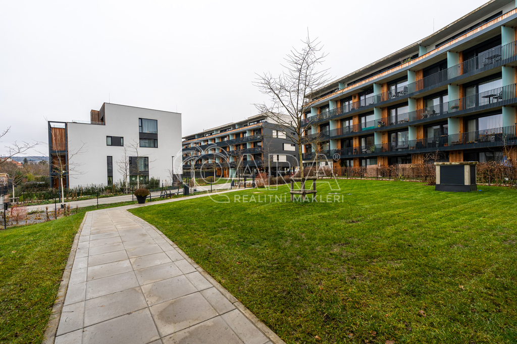 Výborná je také dopravní dostupnost – v docházkové vzdálenosti jsou zastávky MHD (autobusové linky) s návazností na metro a další části Prahy. V okolí je kompletní občanská vybavenost – obchody, restaurace, kavárny i služby.