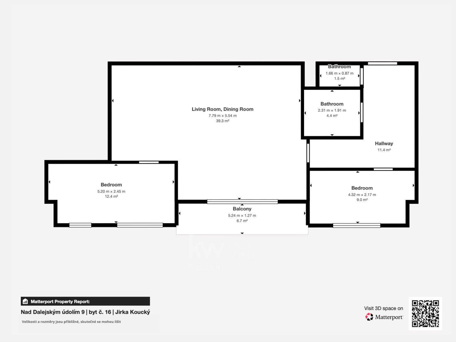 - Byt je velmi prakticky a komfortně řešený: prostorná vstupní předsíň