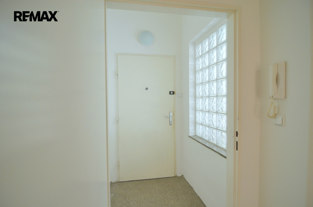 Za vstupními dveřmi je předsíň (1,5m2) osvětlená oknem ze skleněných tvárnic, odtud se dostaneme do prostorné haly (13 m2), která je vybavena šatní skříní. Z haly vejdeme do světlé a prostorné kuchyně (12,8 m2), kam se pohodlně vejde i stůl a židle. Kuchyň je vybavená lednicí s mrazákem, kuchyňskou linkou a plynovým sporákem s digestoří. Dále je z haly přístupná menší pracovna (4,7 m2), s velkým oknem, kam by se případně vešla i postel a psací stůl a může z ní být menší studentský pokojík. Z haly je přístupné i WC s umyvadlem a také komora, (obojí 1,3 m2). Největší obytný pokoj (23,2 m2) je také přístupný přímo z haly a má orientaci do ulice Pivovarnická. Odtud se menší chodbičkou dostaneme ke koupelně (4,9 m2) vybavené vanou a umyvadlem a také pračkou a plynovým kotlem, ale také do větší ložnice (15,8 m2). Zde je šatní skříň a může, pokud bude zájem, zůstat palanda. Není problém ji ale demontovat a odvézt. Jinak se byt pronajímá prázdný, s možností si byt zařídit dle vašeho vkusu a potřeb.
