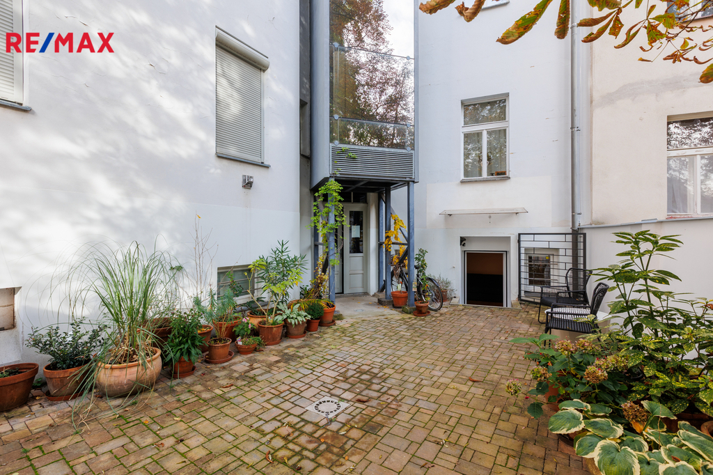 Součástí nájmu je sklep o velikosti 4,4 m², umístěný v blízkosti jednotky. Ve sklepě je přívod vody, odpad pro připojení pračky, elektrická zásuvka a osvětlení. Nájemce může dále využívat venkovní posezení ve vnitrobloku, odkud je částečný výhled na Žižkovskou televizní věž.