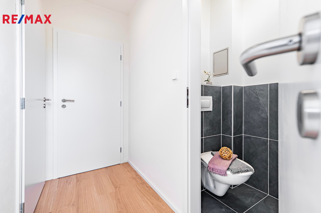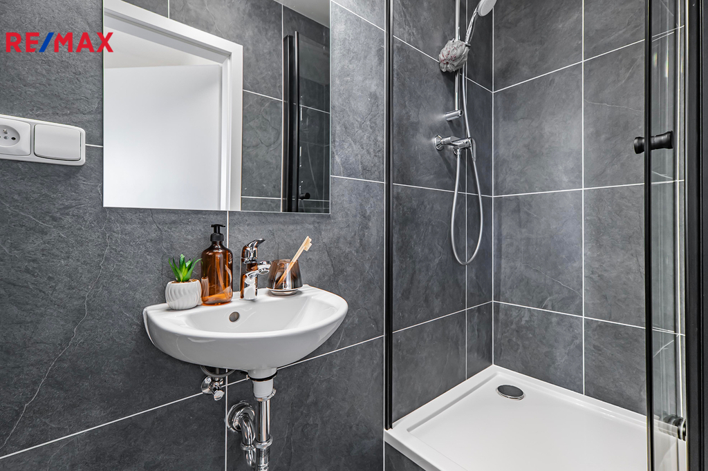 Nová kuchyňská linka je vybavena moderními spotřebiči, včetně ledničky, vestavěné myčky, indukční varné desky a trouby. Koupelna je oddělená od toalety a vybavena podlahovým topením. Vyniká moderním designem s velkoformátovými obklady 60 × 60 cm, které prostoru dodávají elegantní a nadčasový vzhled. V bytě jsou nové rozvody vody, odpadu i elektroinstalace. Kvalitní sanita značky Grohe, plastová okna a bezpečnostní vstupní dveře zajišťují komfort a bezpečí. Dům je sice v původním stavu, ale jeho rekonstrukce je aktivně projednávána v rámci SVJ. Za domem je pak společná zahrada pouze pro obyvatele domu, kterou mohou nájemci využít k příjemnému posezení.