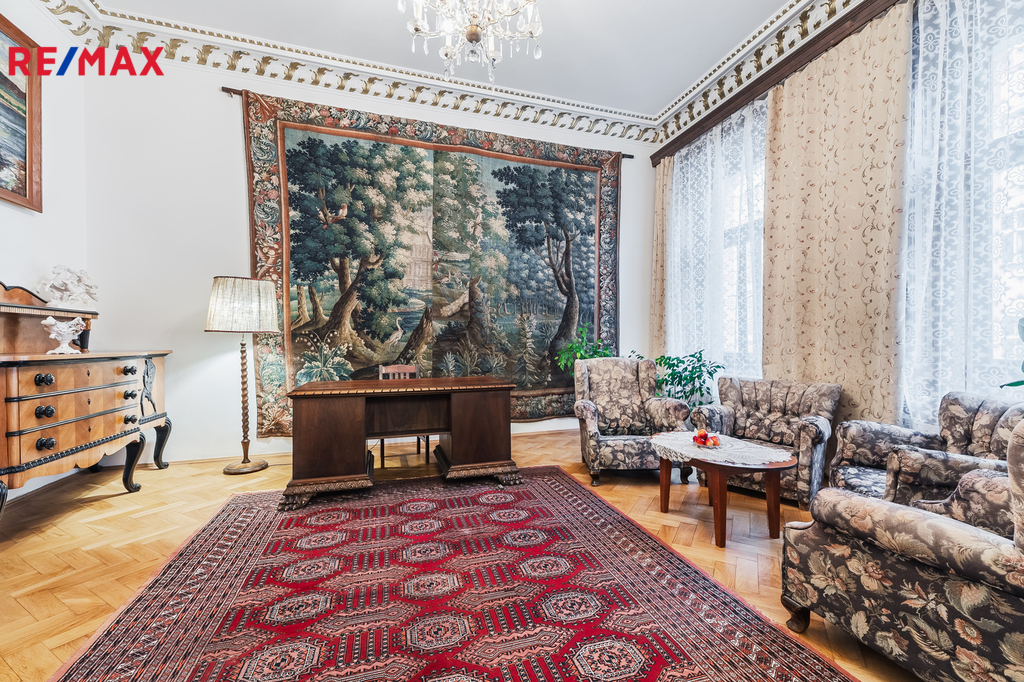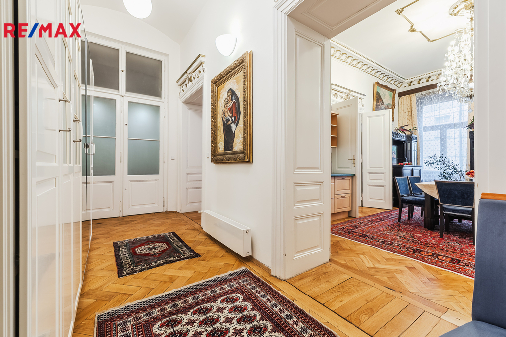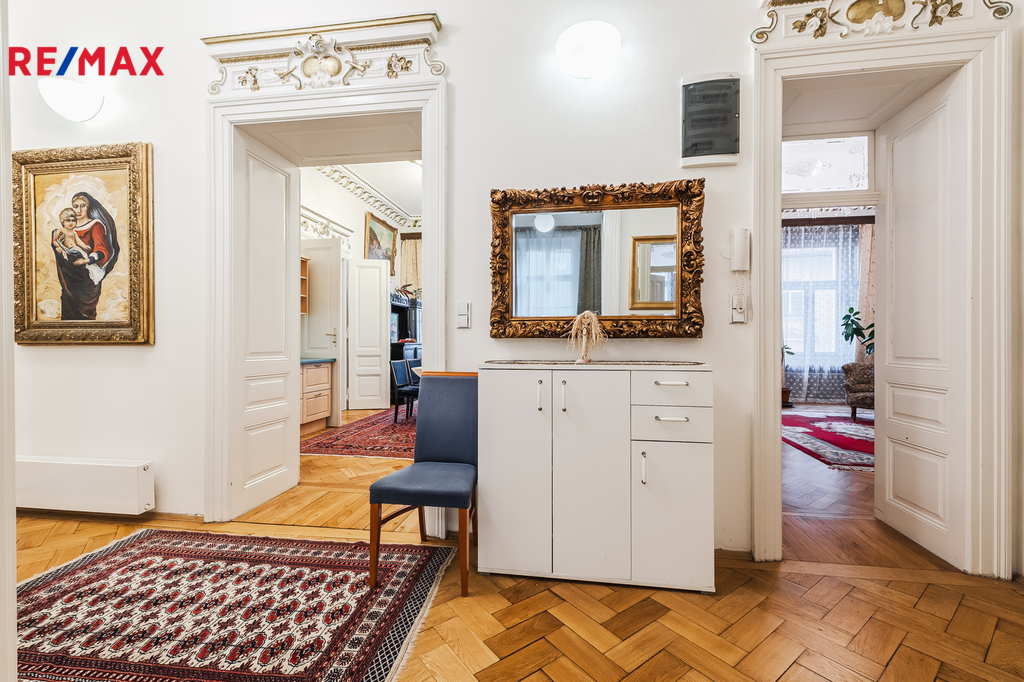 Pronájem reprezentativního bytu 4+1 (180 m²) v historickém stylu, Praha 2 – Na Zderaze