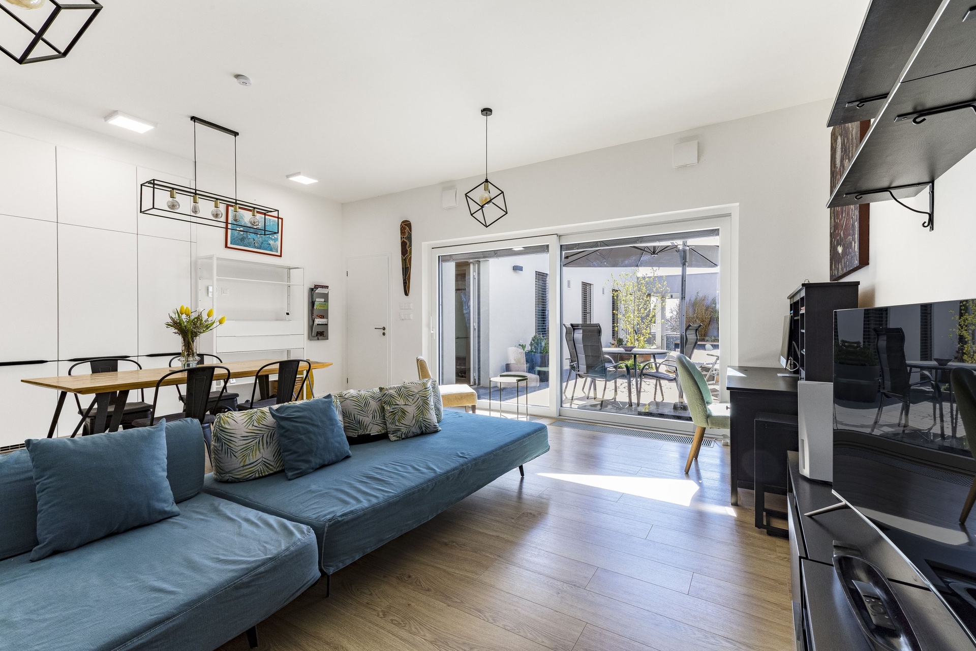 Ve všech pokojích v domě je filtrační rekuperace. V koupelnách jsou nové skříňky pod umyvadlo s úložnými prostory. Dům je vhodný pro rodiny s dětmi i zahraniční klientelu. V domě je také technická místnost, součástí nájmu je i pračka a sušička. Dům je možné si pronajmout nezařízený, nebo po dohodě s majitelkou ponechat část vybavení. Dům je k dispozici od 1. 7. 2026. Venkovní terasa je kompletně zařízená a veškeré vybavení je součástí nájemného.