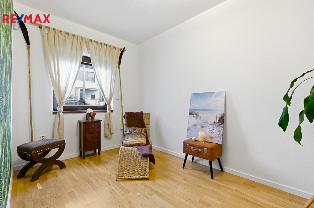 - Dřevěná podlaha i okna s trojsklem, dveře Sapeli