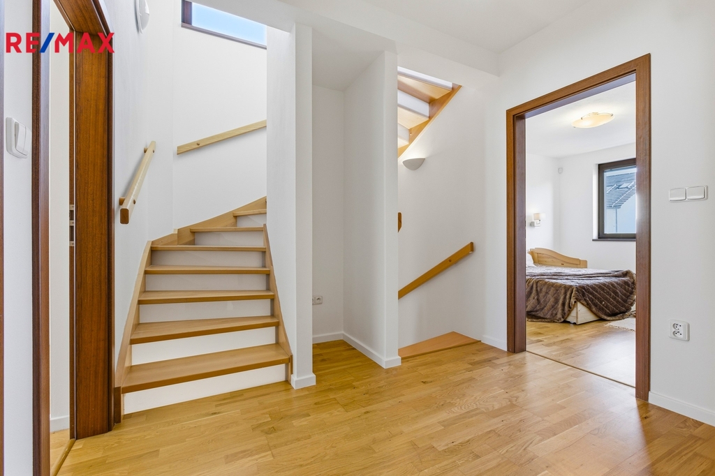- 4 ložnice (1 v přízemí), 3 koupelny, šatna, komora