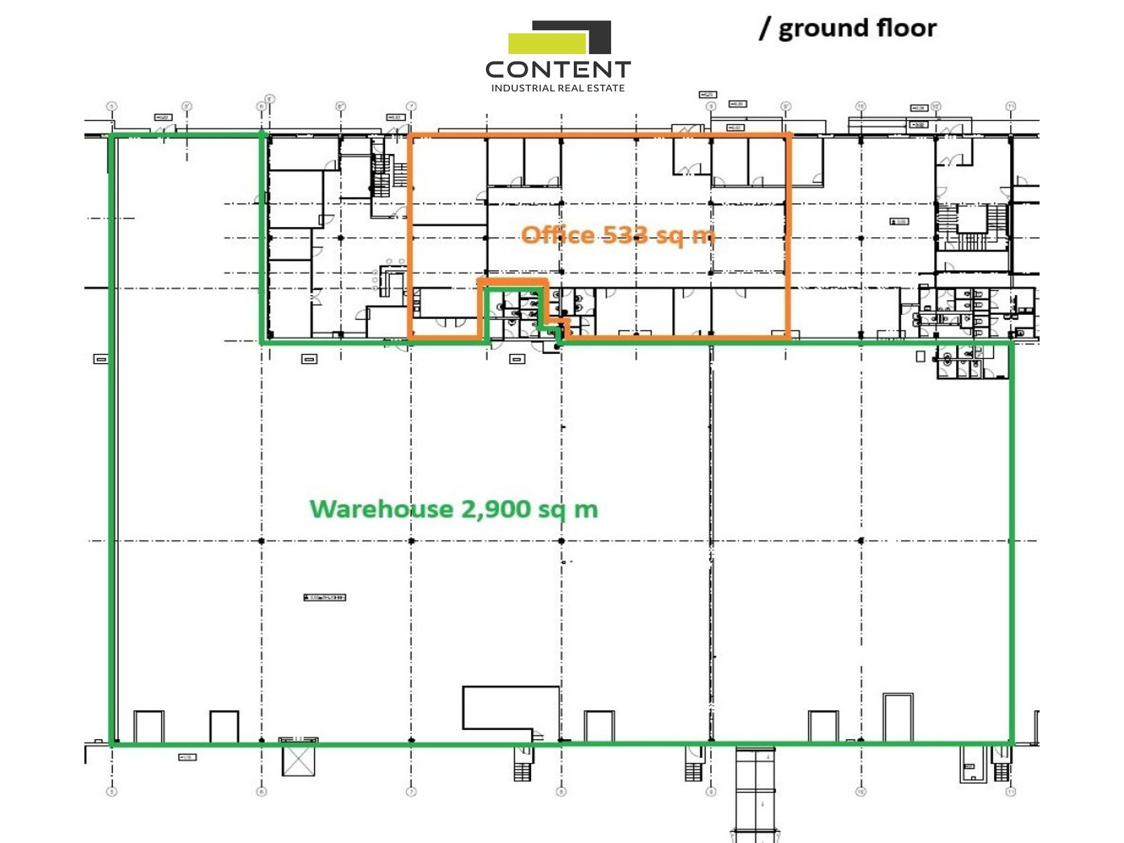 - kancelářské prostory a kompletní zázemí ve dvou podlažích, až 1000 m²,