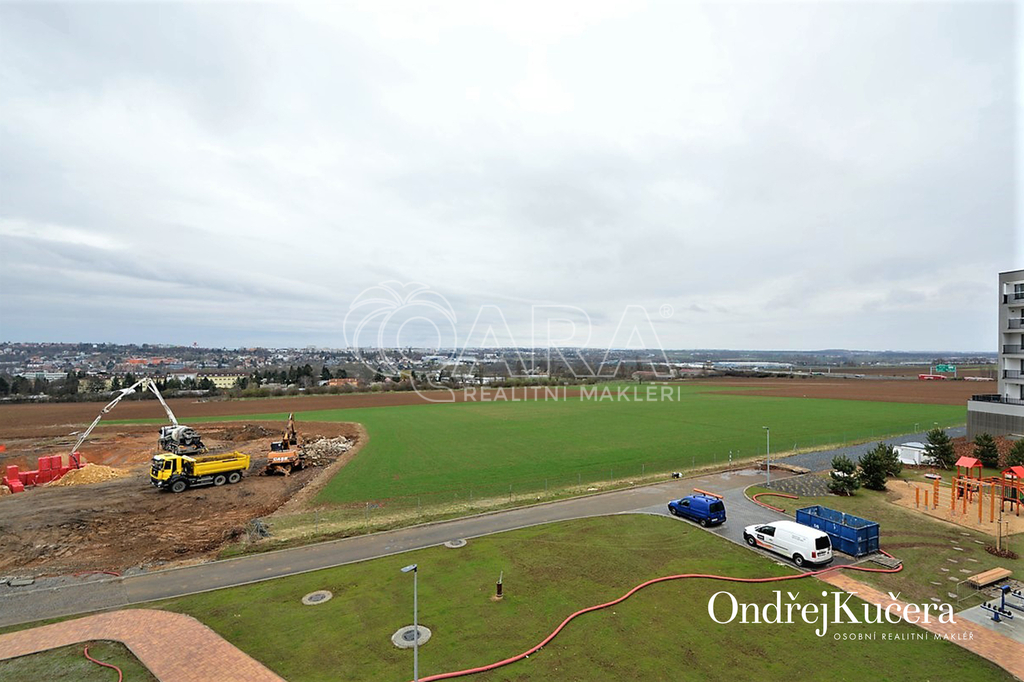 Prostorný a slunný byt 1+kk s terasou, celkovou výměrou 44 m2 a s garážovým stáním v domě s výtahem v ulici Drnovská 1167, Praha 6 - Ruzyně. Jedná se o projekt Byty u Šárky.