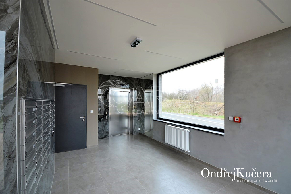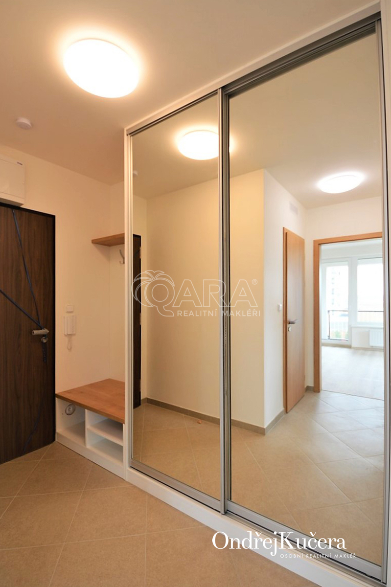 Bezbariérový byt se nachází se ve třetím podlaží s jihozápadní orientací a otevřeným výhledem. Je prakticky řešený a částečně vybavený tak, aby splňoval veškeré potřeby pro komfortní bydlení. Kuchyňská linka včetně všech kvalitních spotřebičů – lednice s mrazákem, myčka, elektrická a mikrovlnná trouba, indukční deska, odsávací digestoř. V předsíni jsou úložné prostory formou zrcadlových vestavěných skříní. K tomu je samostatná komora s policovým systémem. V pokoji je kuchyňská linka a vstup na krytou terasu s výměrou 8,3 m2. V koupelně s oknem je vana se sprchovou zástěnou, toaleta a příprava na pračku. Podlaha v místnostech je plovoucí a dlažba v koupelně. Okna jsou plastová s izolačním trojsklem. V pokoji je rekuperace a nad okny garnýže. Vstupní bezpečnostní dveře a interiérové dveře od Sapeli. K dispozici je kolárna a kočárkárna.
