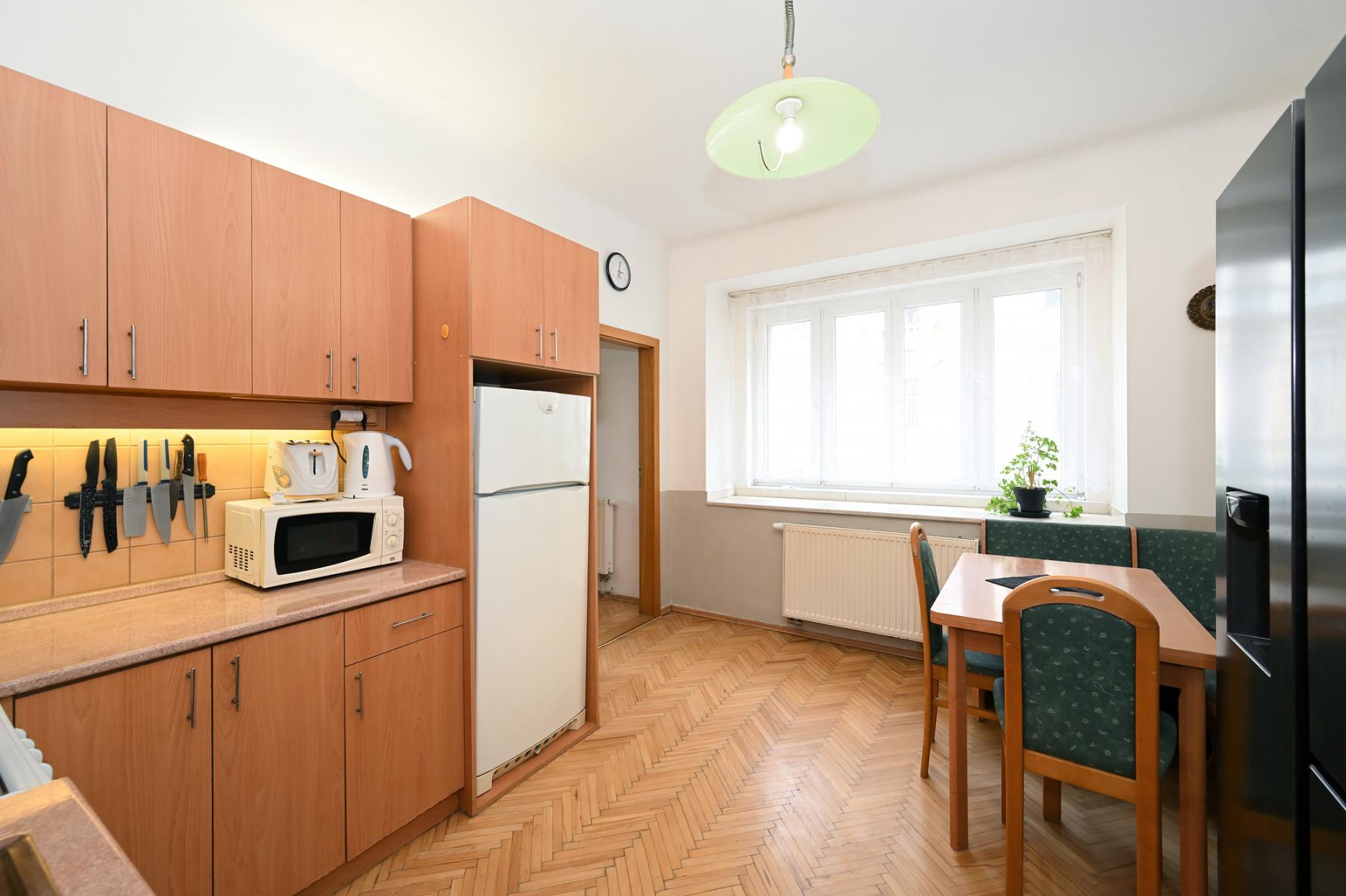 Vše co potřebujete pro bydlení ve městě. Metro Palmovka po ruce, tichý byt, velký sklep 10 m2, dům s výtahem.