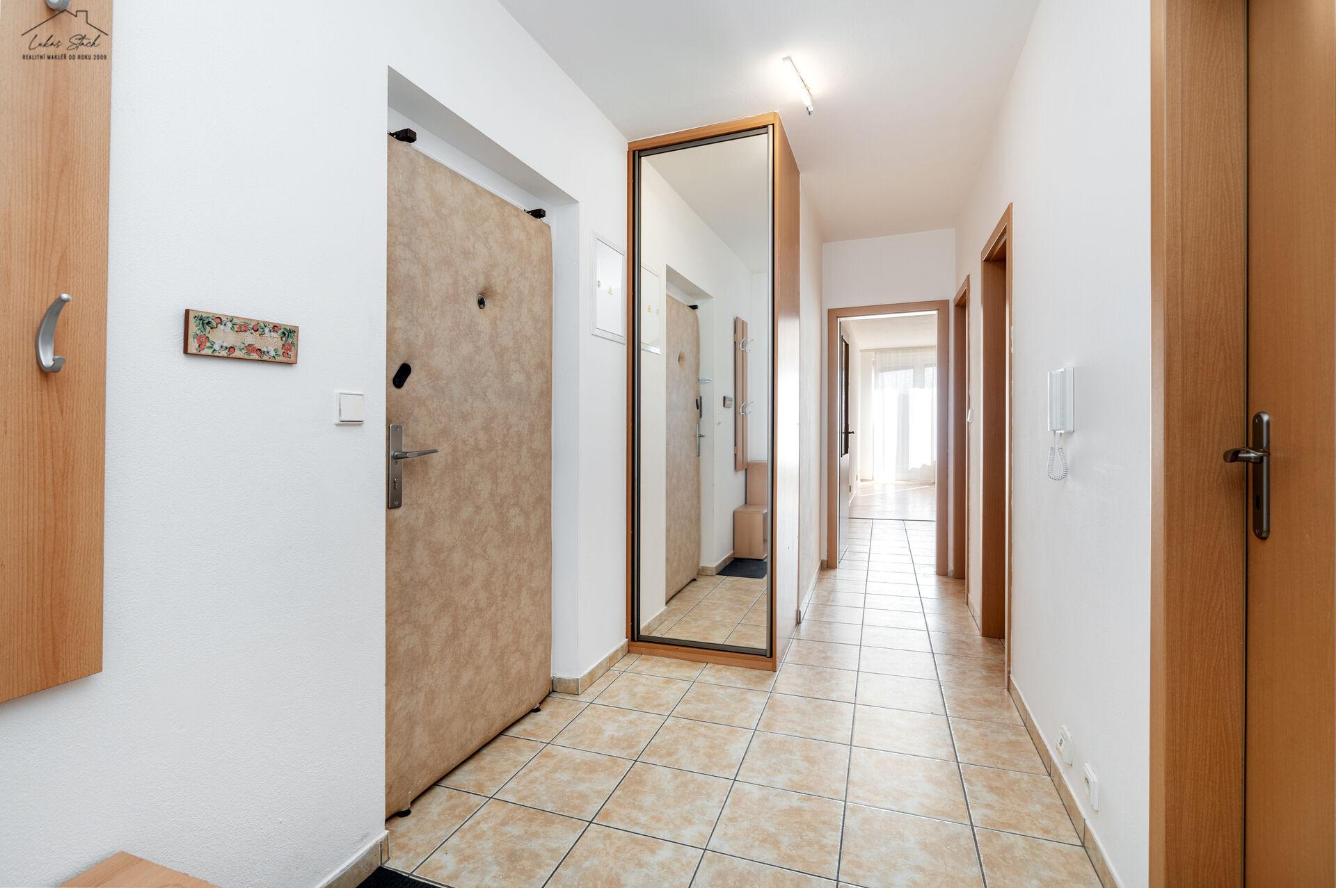 Dalším silným prvkem bytu je dostatek úložného prostoru – komora přímo v bytě, prostorná vstupní hala a oddělená ložnice, která zajišťuje soukromí.