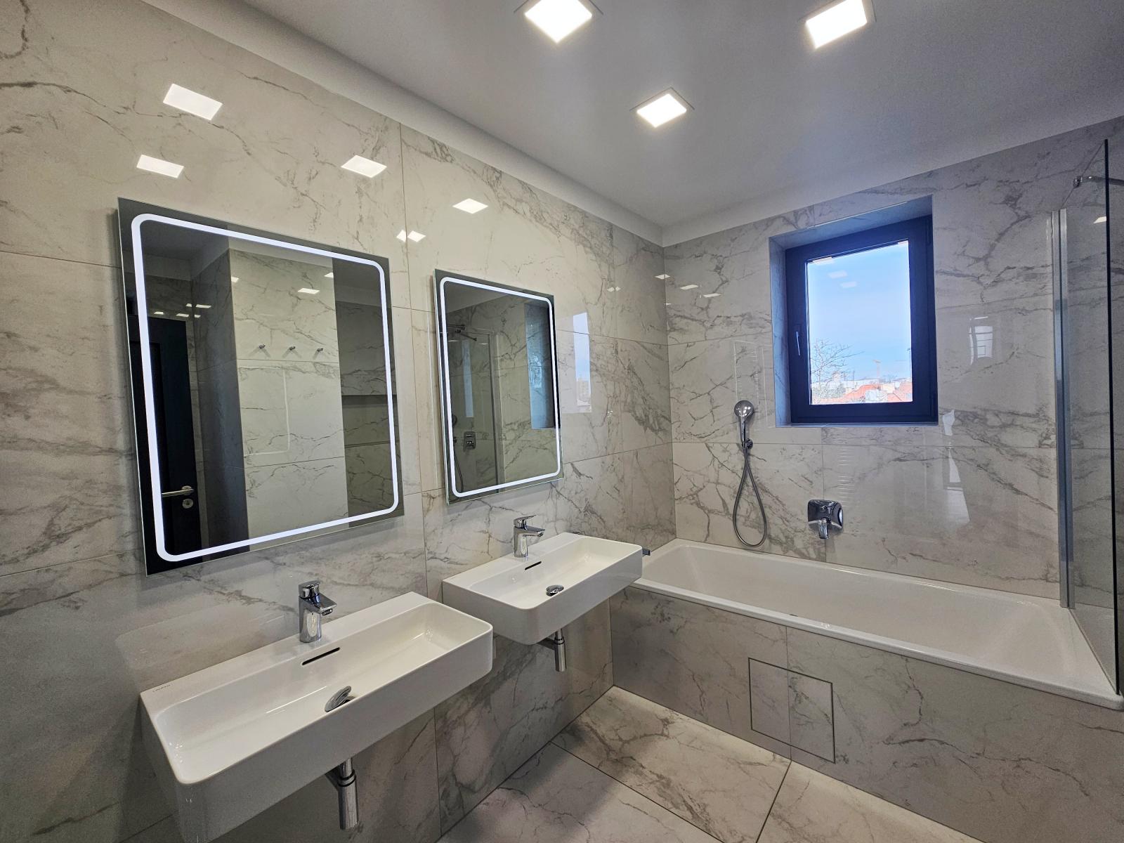 Pronájem třípodlažní moderní vily, zahrada, terasa, sklep, Praha Hostivař