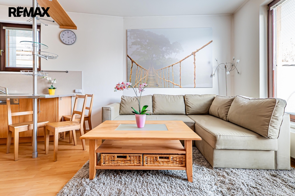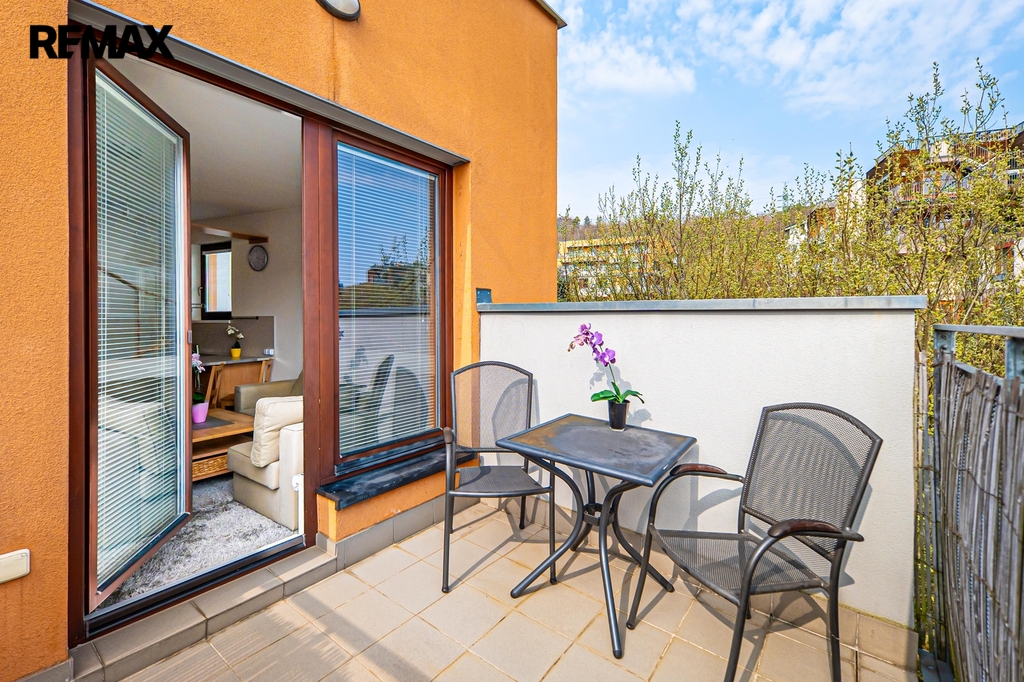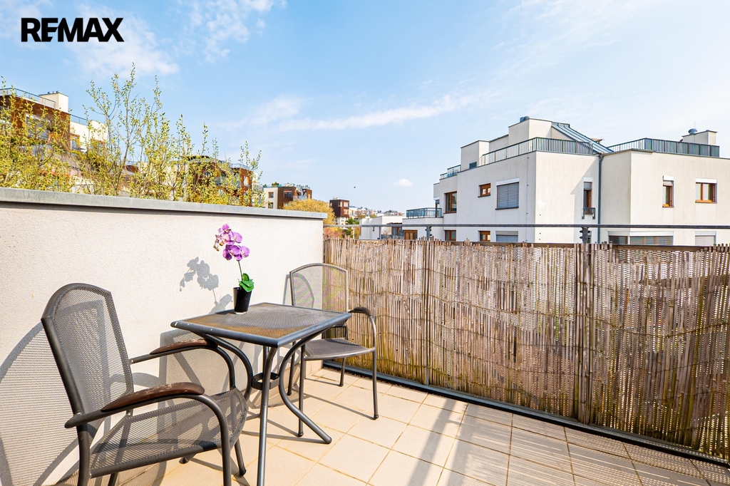 Pronájem útulného a plně vybaveného bytu 2+kk s terasou, parkovacím stáním a sklepem na Smíchově