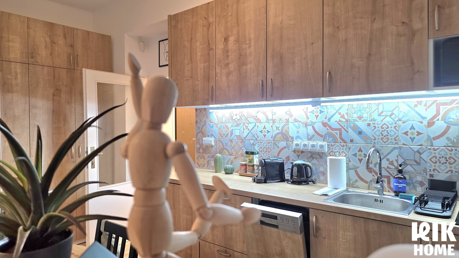 - Kuchyně: Oddělená místnost s moderní kuchyňskou linkou, spotřebiči (včetně myčky nádobí) a jídelním stolem.