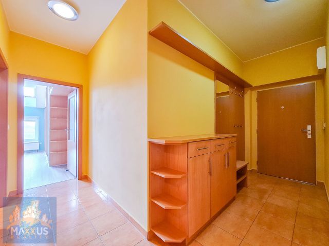 K dlouhodobému pronájmu nabízíme nábytkem vybavený podkrovní byt 2+kk o užitné ploše 64,6 m2 se sklepní kójí (3 m2) situovanou v suterénu domu, ul. Boloňská, Praha 10 – Horní Měcholupy. K bytu náleží garážové parkovací stání ve vedlejším parkovacím domě za měsíční poplatek 1.500,- Kč. Byt se nachází v 6. podlaží 6. podlažního domu s výtahem. Dispozice bytu: vstupní předsíň, obývací pokoj s jídelnou a plně vybavenou kuchyňskou linkou (myčka, lednice s mrazákem, el. varná deska, trouba), samostatná toaleta, koupelna s vanou a přípojkou pračky a ložnice. Velkou výhodou bytu jsou úložné prostory řešený v rámci vestavěných skříní a sítě proti hmyzu. Podlahy: laminátové a dlažba. Vytápění: ústřední. V okolí domu se nachází Golf Club Hostivař, Kaufland, MŠ, ZŠ, MÚ Praha 15, oblíbený Pivovar Hostivar. Velmi rychlé spojení s centrem metropole do 15 minut -> vlaková stanice Praha-Horní Měcholupy. Poplatky jsou 3.500,- Kč a elektřina se převádí na nájemce. Byt je volný k nastěhování ihned. Makléř doporučuje prohlídku. PENB: G* štítek nebyl dodán, hodnota bude aktualizována.