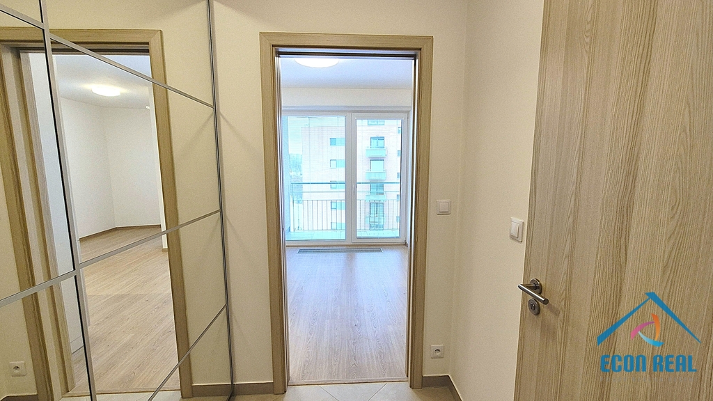 Společnost ECON REAL s.r.o. si Vám dovoluje nabídnout pronájem v podstatě nového bytu 1+kk, výměry 32 m2 (28,7 m2 byt + 4,1 m2 lodžie + 2 m2 zděná sklepní kóje a parkovací místo v garážích pod domem). Byt se nachází ve 4. patře bytového domu, je bezbariérový a orientovaný na JV a je vybaven dvěma kvalitními a velmi prakticky řešenými šatními skříněmi a kuchyňskou linkou s varnou sklokeramickou deskou, troubou, myčkou a vestavěnou lednicí s mrazákem. Příjemná koupelna disponuje propojením moderního sprchového koutu, s toaletou a umyvadlem se zrcadlem. Pračka s integrovanou sušičkou je součást vybavení. Celý interiér je moderní a světlý, vstupní dveře jsou bezpečnostní.
