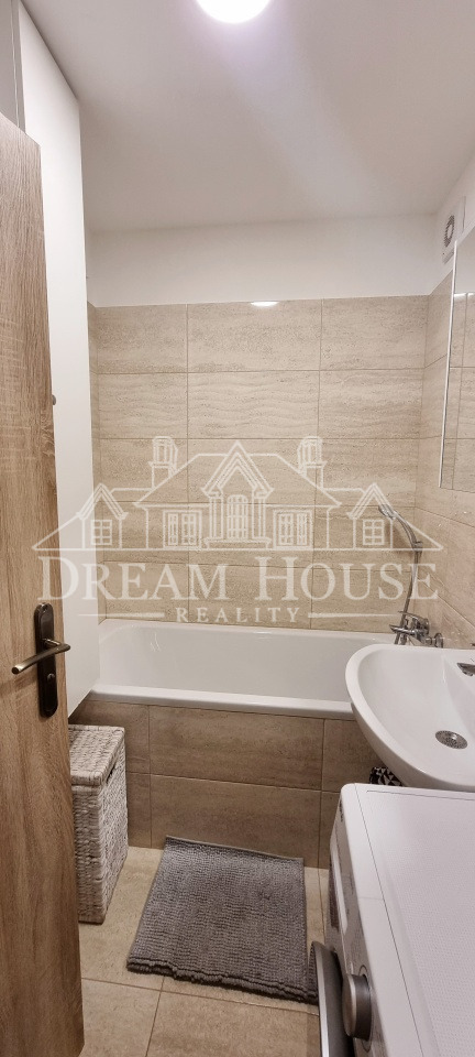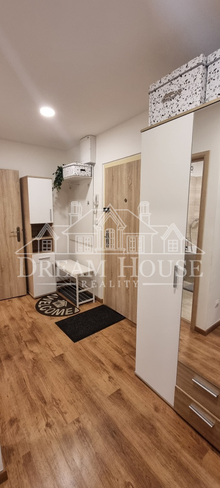 Byt tvoří obývací pokoj s odděleným kuchyňským koutem s kompletně vybavenou kuchyňskou linkou všemi spotřebiči (sklokeramická varná deska, el. trouba, digestoř, mikrovlnná trouba, myčka nádobí, lednice s mrazákem a kávovar), samostatná ložnice, prostorná vstupní chodba, zděná koupelna s vanou a pračkou se sušičkou, a samostatná toaleta.