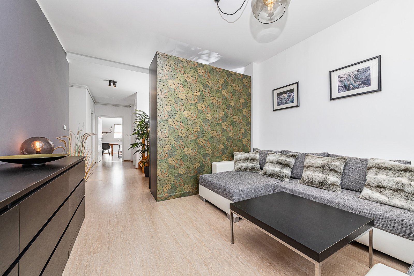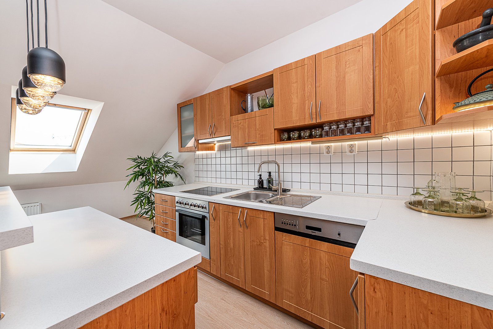 Nabízíme k pronájmu prostorný, slunný mezonetový byt 2+1 (100 m2) s jižně orientovanou terasou (16 m2) v 5. a 6. patře činžovního domu s výtahem ve vyhledávané lokalitě Praha 3 - Žižkov. Plně zařízený byt nabízí ve spodním patře vstupní halu, obývací pokoj s okny do tichého dvora, kompletně vybavenou kuchyň s jídelní částí, koupelnu s rohovou vanou a sprchou, toaletou, pračkou a sušičkou, a technickou/úložnou místnost. Hornímu patru dominuje ložnice (směrovaná do dvora) se vstupem na rozlehlou soukromou terasu s příjemným výhledem do vnitrobloku a na Žižkovskou věž. Je tady i malá koupelna se sprchovým koutem a toaletou. K vybavení bytu patří moderní nábytek, klimatizace a plynový kotel, internet, na podlahách jsou dřevěné parkety a dlažba. Dům se nachází na rozhraní Žižkova a Vinohrad, v oblíbené lokalitě s veškerou občanskou vybaveností, restauracemi, kavárnami, bistry, obchody, s výbornou dostupností do centra pěšky (cca 15 minut) nebo MHD, stanice tramvaje a metra je pouhých pár minut chůze. V blízkosti je park Riegrovy sady, náměstí Jiřího z Poděbrad, kde se pořádají farmářské trhy nebo náměstí Míru.