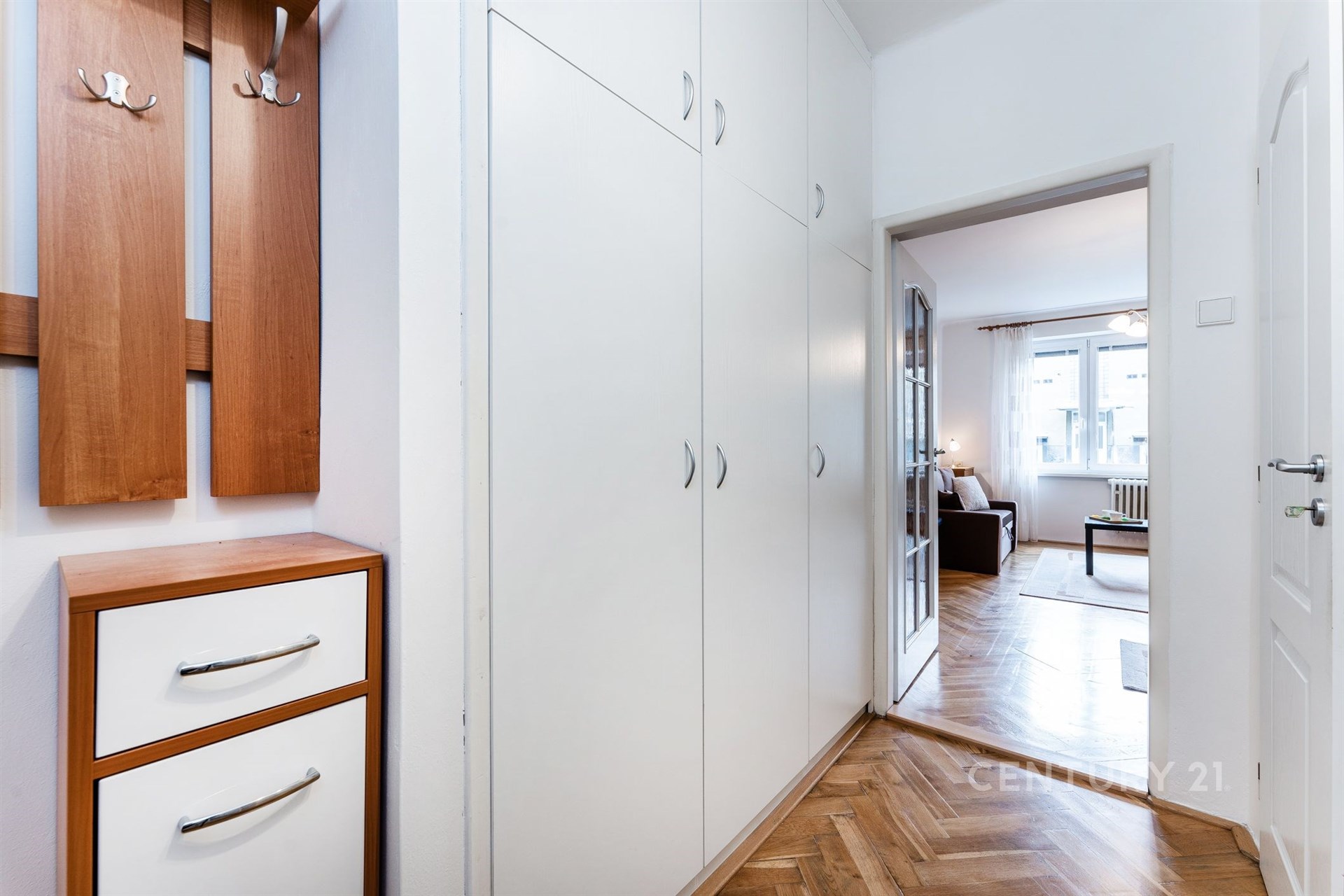 Byt prošel rekonstrukcí a nabízí moderní vybavení: dřevěné podlahy, plně vybavenou kuchyňskou linku (elektrický dvojvařič, přenosná trouba, mikrovlnka, malá lednice, varná konvice a základní nádobí) a koupelnu s vanou a pračkou. WC je samostatné. Praktické vestavěné skříně a další úložné prostory ve vstupní chodbě i pokoji vám zajistí dostatek místa pro všechny vaše věci.