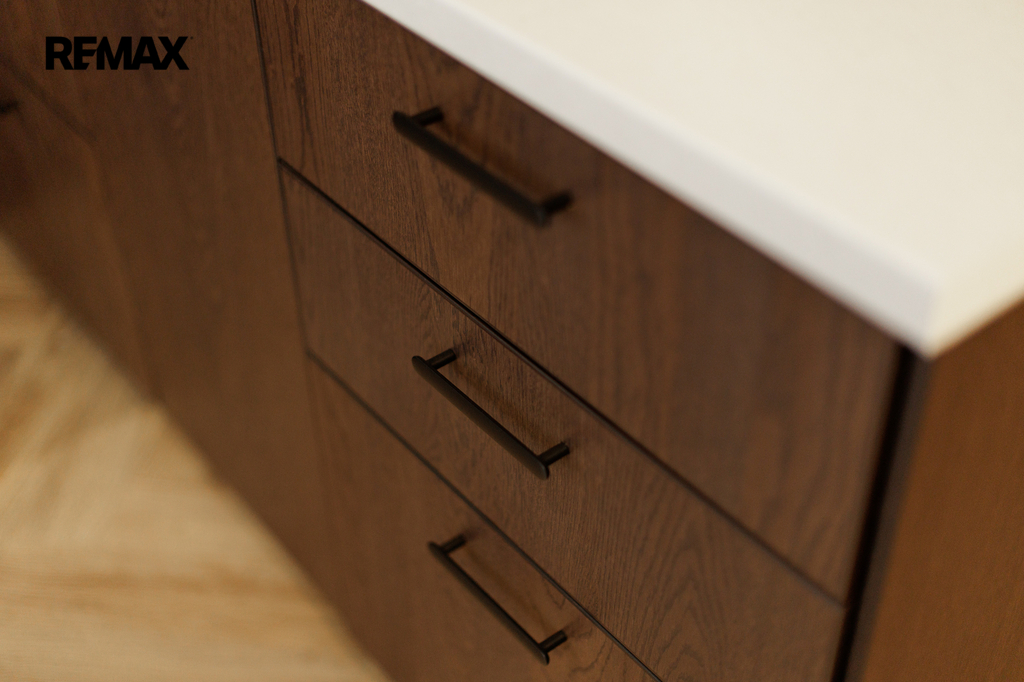 The apartment features a designer kitchen equipped with a dishwasher, hob and oven, complemented by high-quality finishes including imported Spanish tiles. Additional amenities include a washing machine, built-in wardrobes and a highly practical walk-in wardrobe — a rare benefit for apartments of this size. As part of the reconstruction, a new energy-efficient hot water boiler has also been installed. The layout has been thoughtfully designed to maximise the use of space and provide comfortable modern living.