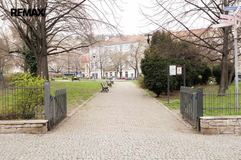 Lokalita patří k tomu nejlepšímu, co Praha nabízí. Arbesovo náměstí, metro Anděl, nákupní centrum Nový Smíchov, desítky kaváren a restaurací jsou doslova za rohem. Smíchov je dnes jedna z nejvyhledávanějších pražských čtvrtí, která skvěle kombinuje autentický charakter s moderním životním stylem. Zborovská ulice vede od mostu Palackého po most Legií přibližně sto metrů od Vltavy, takže ranní procházka podél řeky je samozřejmostí.