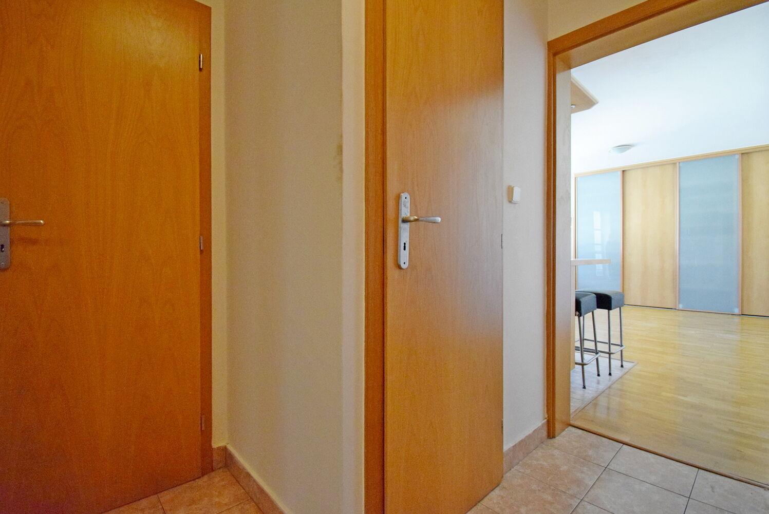 Hezký, nezařízený 1+kk s balkonem v novostavbě z roku 2003 v těsné blízkosti Aquaparku Šutka a Přírodního parku Drahaň-Troja na klidném a tichém místě 5 minut od stanice metra Kobylisy. Prostorný pokoj (26 m2) je vybavený šatními skříněmi, kuchyňskou linkou s barovým pultem a židlemi. z pokoje se vchází malý balkon s krásným výhledem na Prahu i Čimický háj. Koupelna s vanou a topným žebříkem může být vybavená také pračkou, WC zvlášť. Velkou výhodou je další vestavěná šatní skříň v předsíni a sklepní kóje v suterénu domu. Perfektní občanská vybavenost a skvělé možnosti sportovního vyžití včetně nedaleké Botanické a Zoologické zahrady. Volné od 1.3.2026.