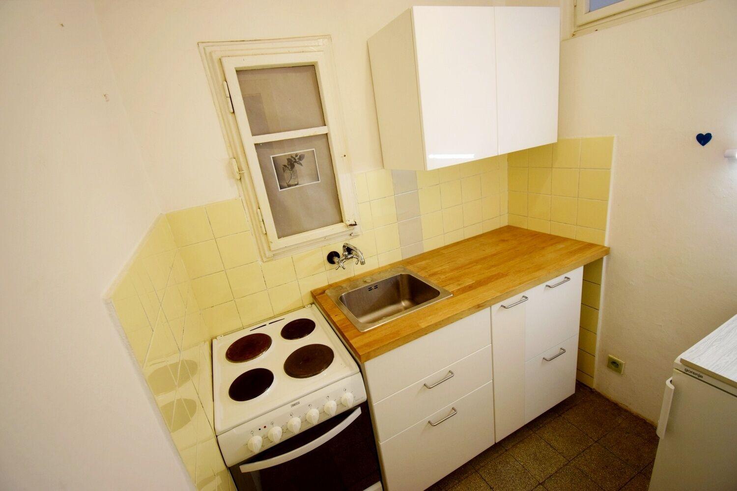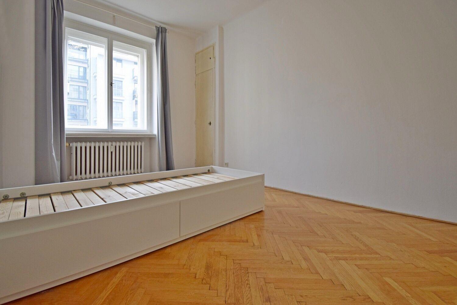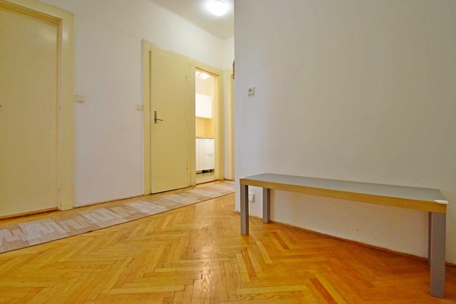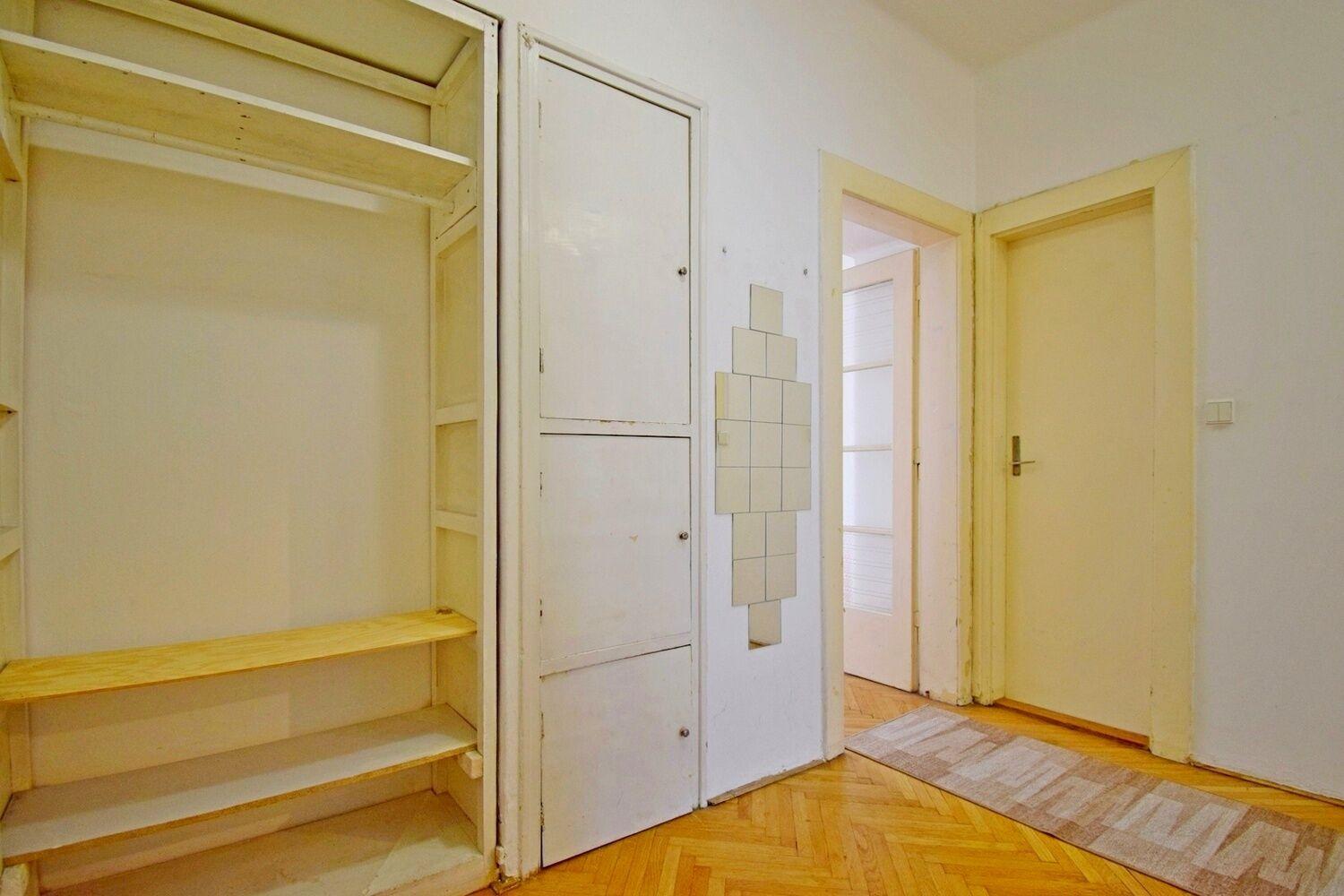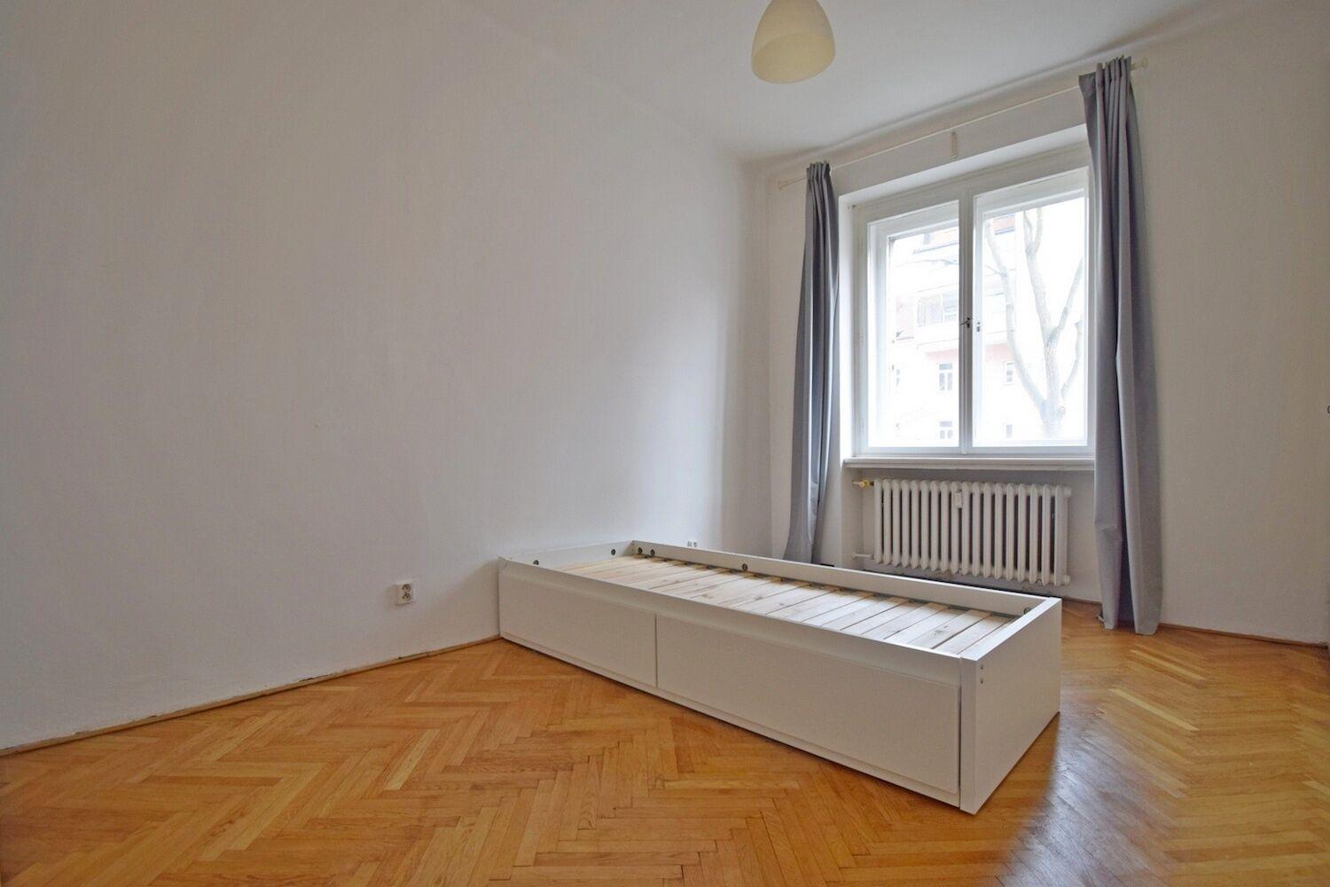 Prostorný 2+kk s výhledem do zeleně ve 2.patře cihlového domu s výtahem v klidné a tiché části Vinohrad. Z prostorné haly jsou samostatné vstupy do všech místností. V kuchyni situované do bývalé velké komory se nalézá okno do světlíku, koupelna s vanou může být vybavena pračkou, WC zvlášť. V bytě se dále nalézá malá komora u jednoho z pokojů a k dispozici prostorný balkon v mezipatře. Velkou výhodou je docházková vzdálenost k metru I. P. Pavlova a nám. Míru. Maximálně pro dvě osoby. Volné ihned.