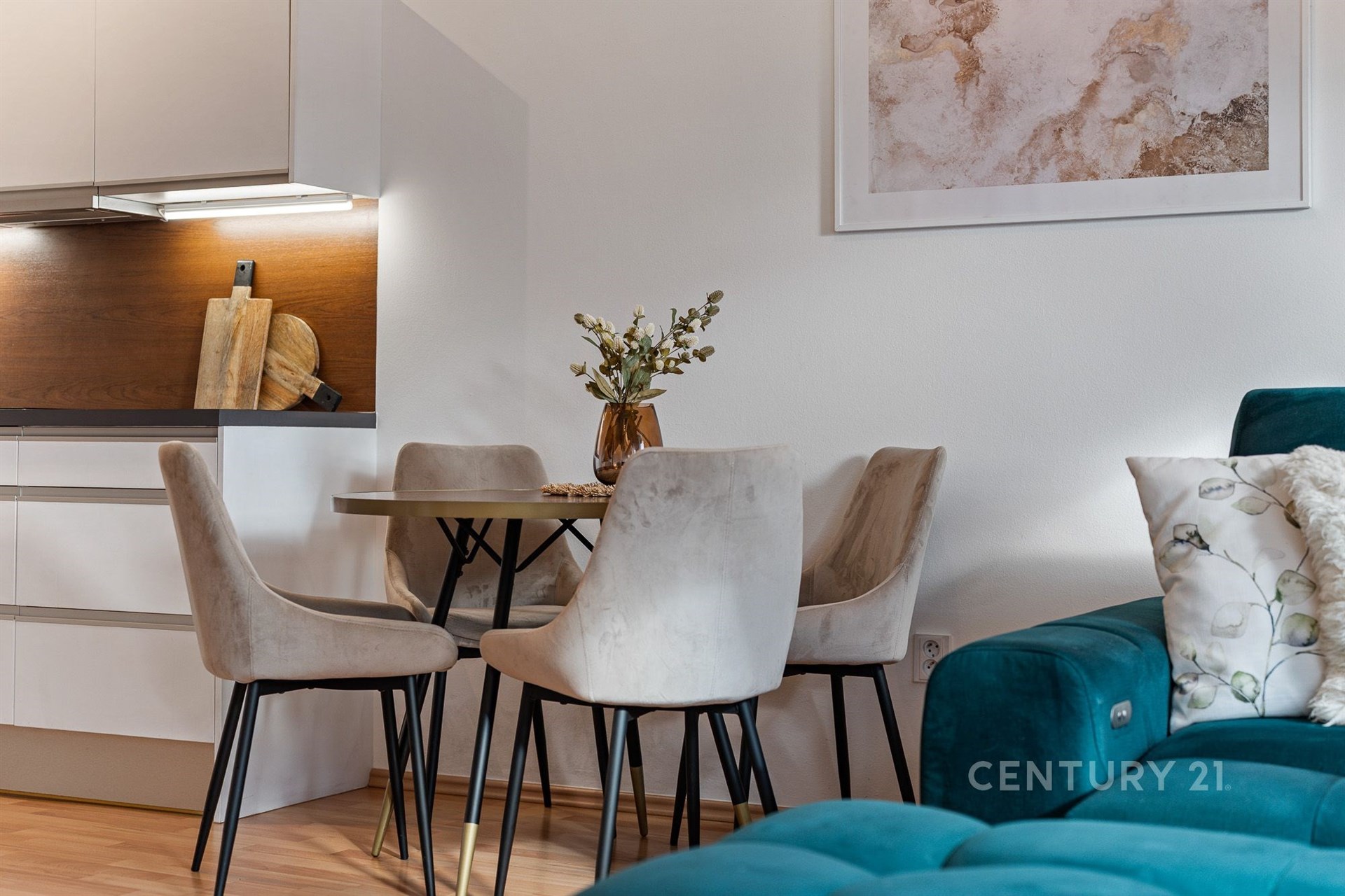 • světlý obývací prostor s kuchyňským koutem,