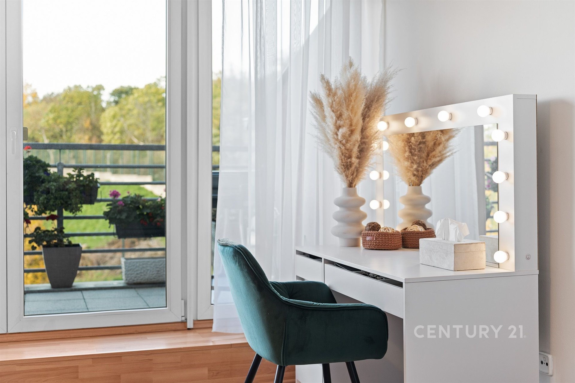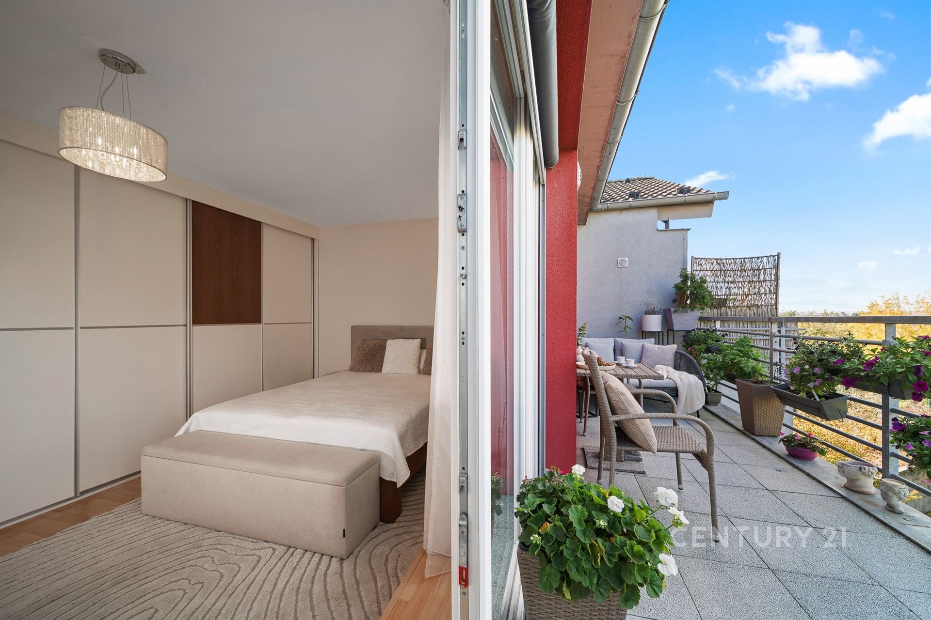 Nachází se v posledním patře moderního domu a jeho hlavní předností je západně orientovaná terasa o velikosti 14 m² s trvalým výhledem do zeleně parku Okrouhlík. Výhled je definitivní – v této části už se dál stavět nebude. Večer oceníte klid a soukromí, které není v městském prostředí samozřejmostí.