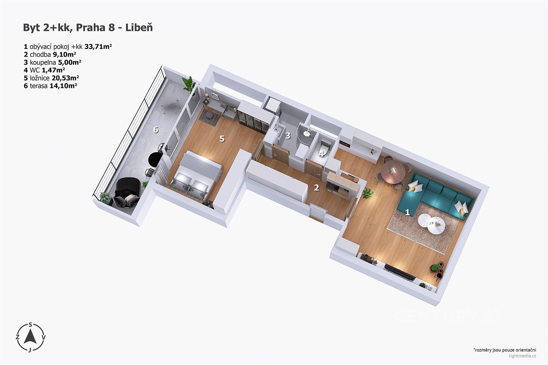 - Dispozice bytu: 2+kk