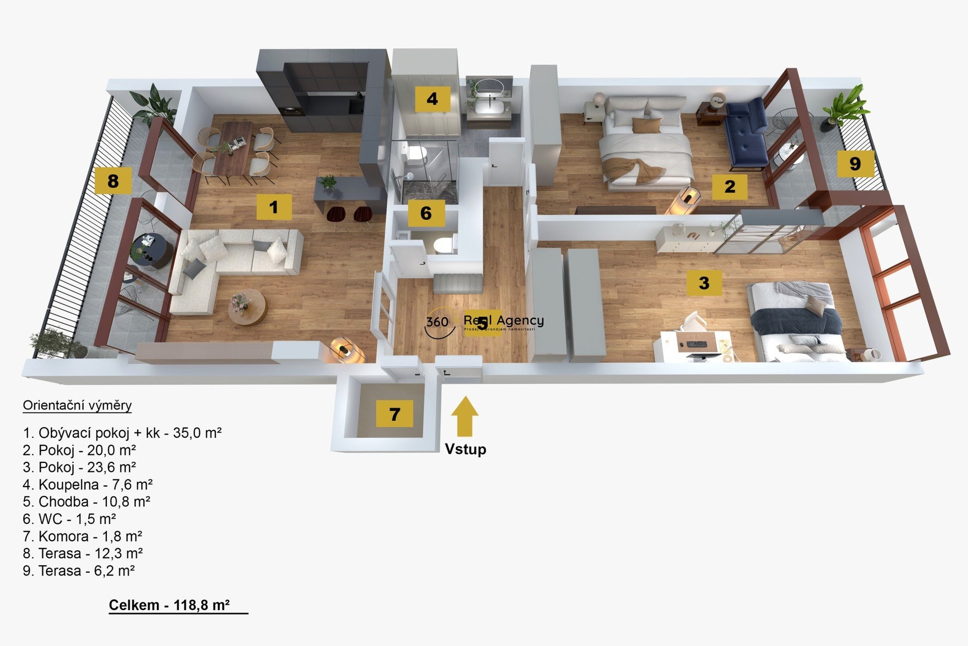 Prostorný a nadstandardní byt 3+kk se dvěma terasami na prestižní adrese Smíchov – Randova ulice.
