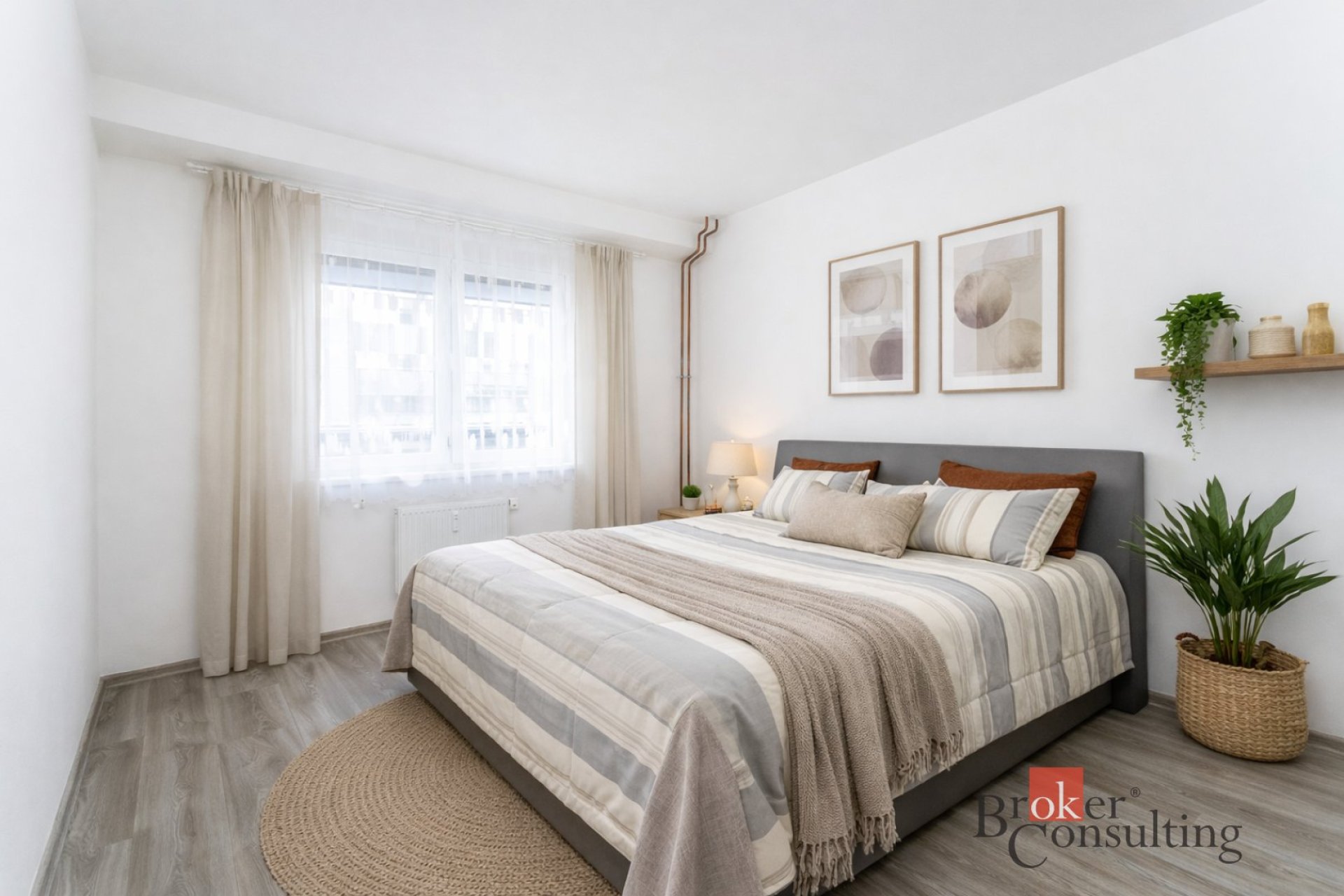 Velkým benefitem je možnost přestavby na 3+kk. Dispozice bytu tuto úpravu přirozeně umožňuje a přesun kuchyně je technicky velmi logický – v podstatě jde pouze o její otočení na druhou stranu zdi při zachování návaznosti na stávající rozvody vody a odpadu. Z původní kuchyně tak může vzniknout například dětský pokoj nebo pracovna. Nenosné vnitřní příčky podporují možnost dispoziční úpravy.