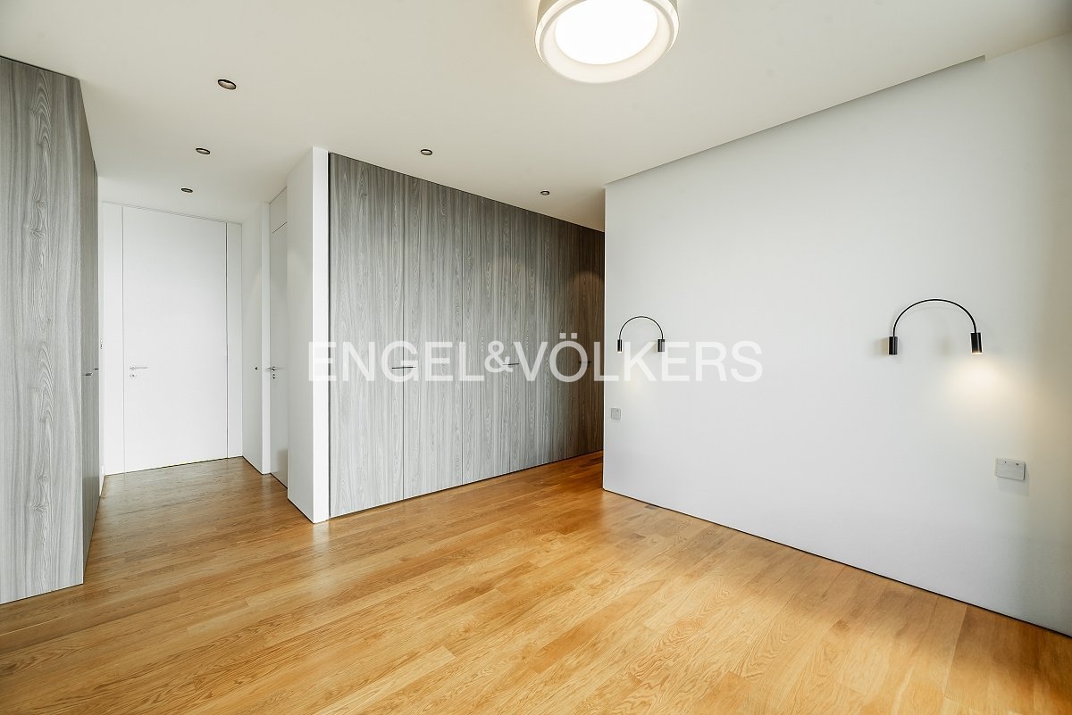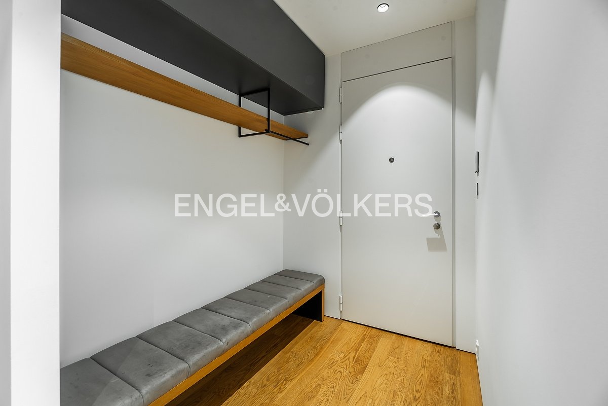 Dispozice bytu je promyšleně řešena s důrazem na maximální komfort – na patře se nacházejí pouze dva byty. Jednotka je orientována na dvě světové strany, přičemž každá místnost má samostatný vstup. Ložnice s jihovýchodní orientací disponuje vlastní en-suite koupelnou s vanou, zatímco prostorný obývací pokoj s kuchyňským koutem směřuje na severozápad a nabízí vstup na terasu s výhledem na Prahu. V bytě dále naleznete samostatnou toaletu a technickou místnost s pračkou a sušičkou. Samozřejmostí je dostatek vestavěných skříní a úložných prostor.