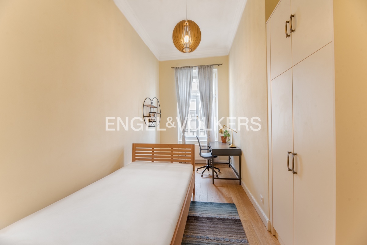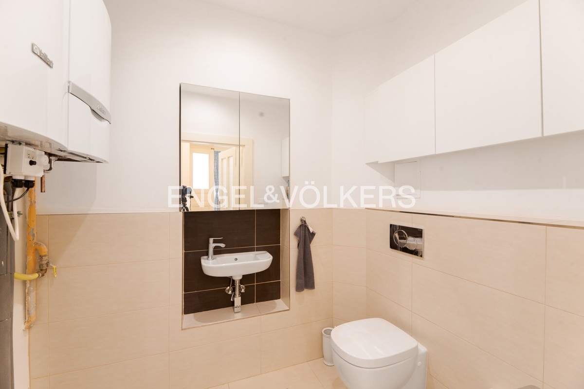 Byt se nachází ve třetím nadzemním podlaží zrekonstruovaného činžovního domu s výtahem. Prošel kompletní rekonstrukcí, při které se dbalo na zachování původních architektonických prvků jako jsou vysoké stropy, kazetové dveře a špaletová okna.