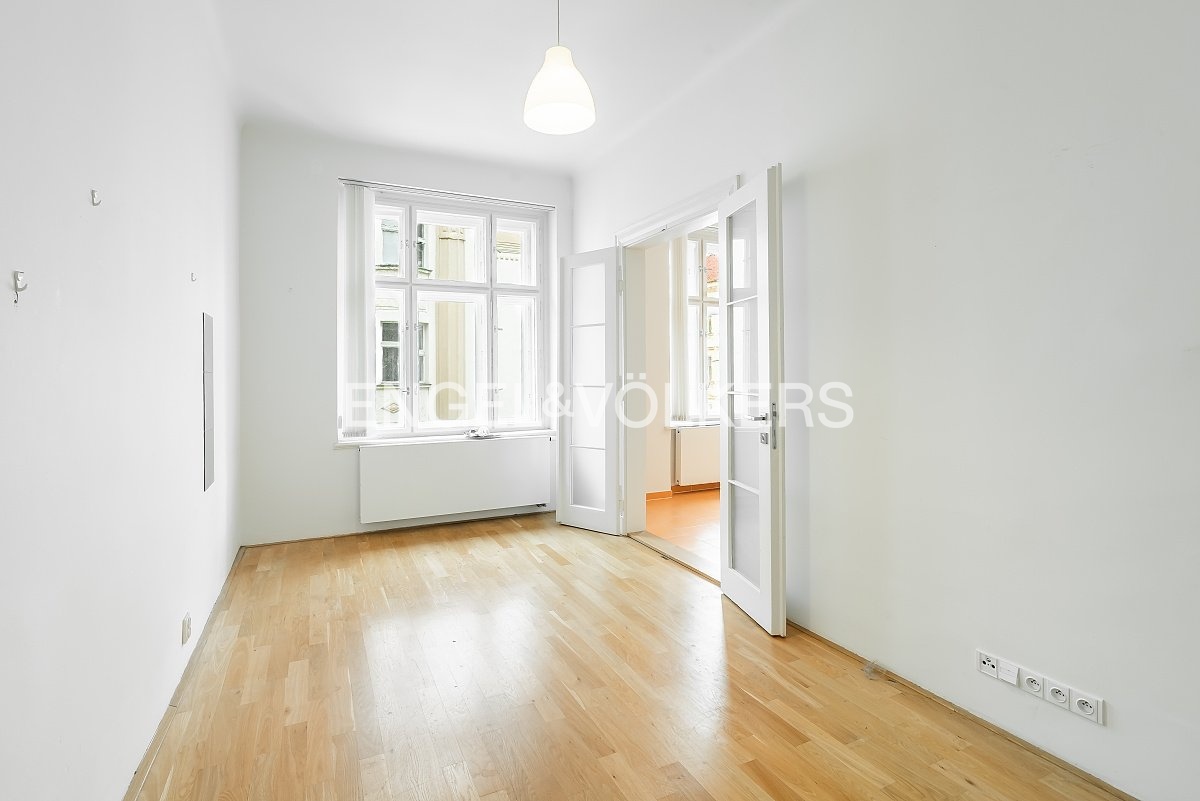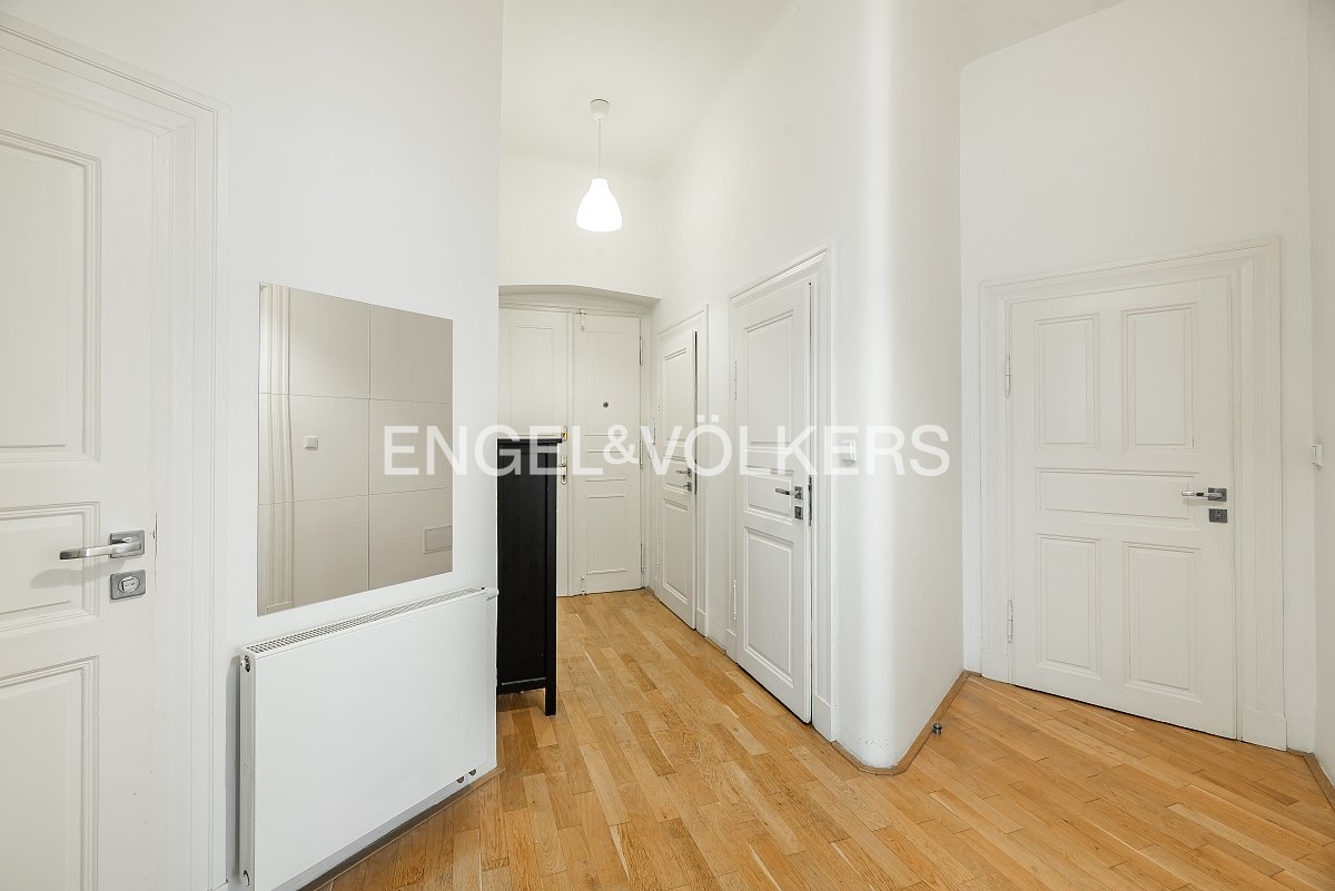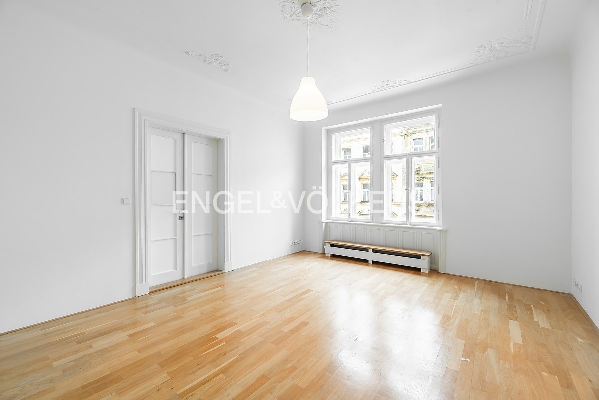 K pronájmu nabízíme prostorný byt 3+1 o velikosti 103 m², situovaný ve 3. nadzemním podlaží krásného historického domu v klidné ulici na Letné.
