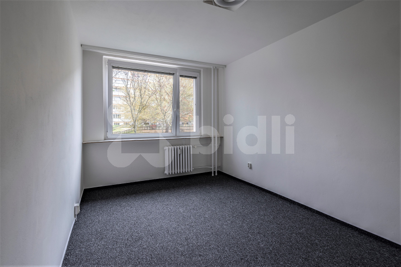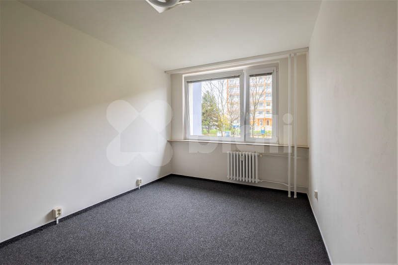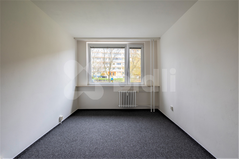 Byt nabízí dva neprůchozí pokoje o velikosti cca 13 m², orientované do klidnější části domu. Jeden slouží jako ložnice (nábytek může zůstat), druhý jako dětský pokoj nebo pracovna, přičemž je k dispozici vizualizace možného budoucího využití.