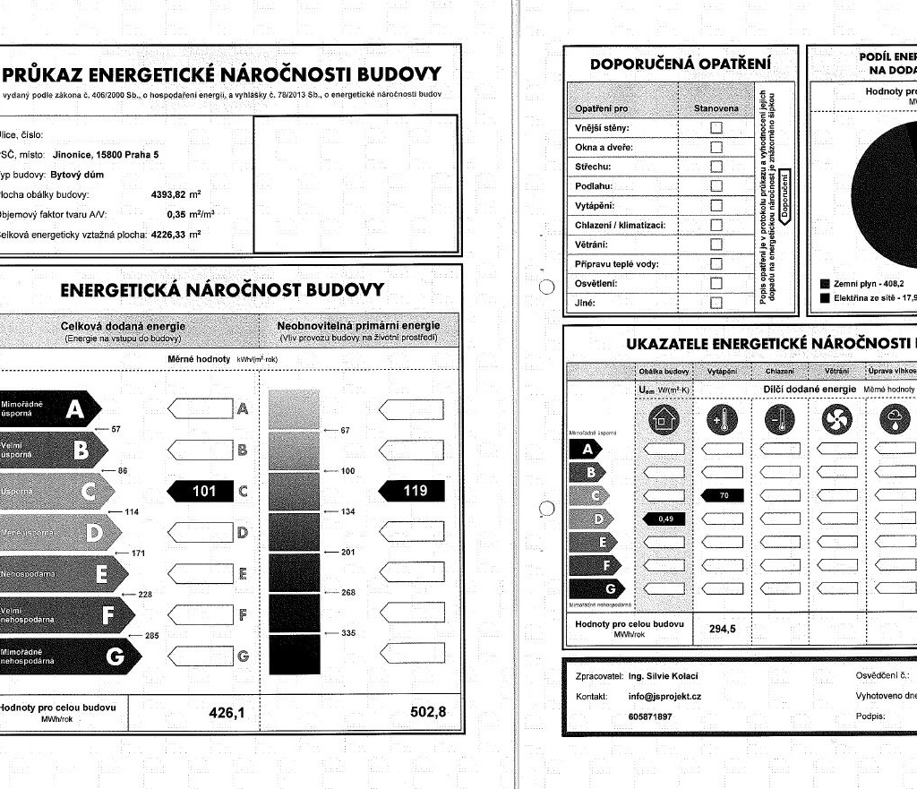 - Ukazatel energetické náročnosti budovy: 101 kWh/m²