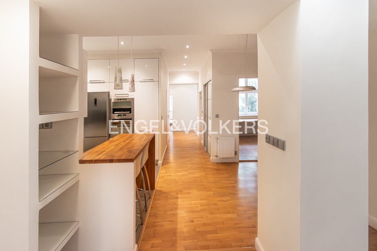 Zrekonstruovaný prostorný byt 4+kk v těsné blízkosti náměstí Jiřího z Poděbrad nabízí komfortní a stylové bydlení v jedné z nejžádanějších pražských lokalit. Rekonstrukce z roku 2008 zkombinovala moderní prvky s klasickým kouzlem městského bytu – dřevěné podlahy dodávají interiéru teplo a eleganci, zatímco dispoziční řešení zajišťuje maximální pohodlí.