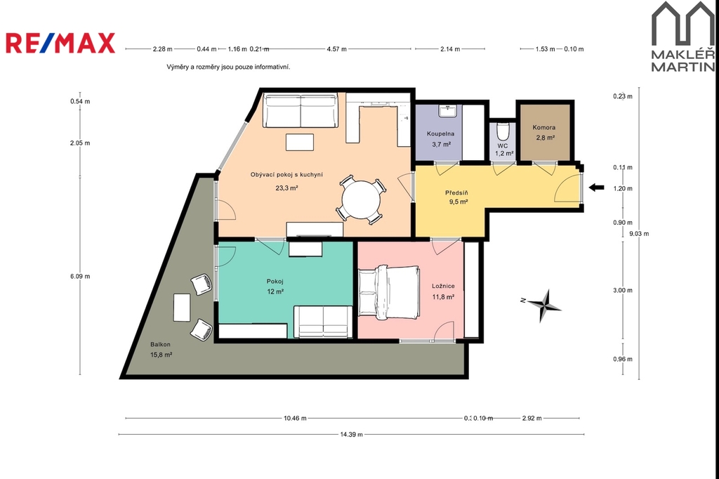 - Dispozice bytu: 3+kk