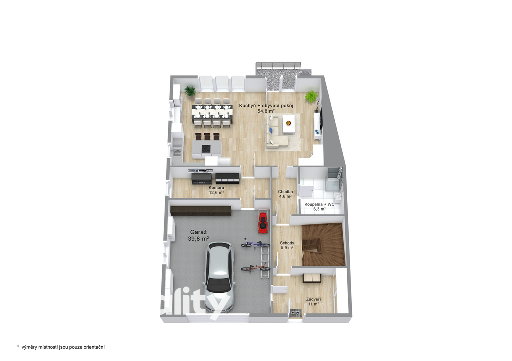 Dům nabízí nadstandardní prostor, moderní technologie a možnost dalšího rozšíření – ideální volba pro rodinu, vícegenerační bydlení i podnikání.