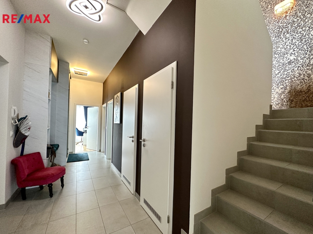 Jedinečnost nabídky spočívá v tom, že dům je umístěn uprostřed zástavby a v bytě a na terase si tak můžete užít, přesto že jste v centru, úplný klid.