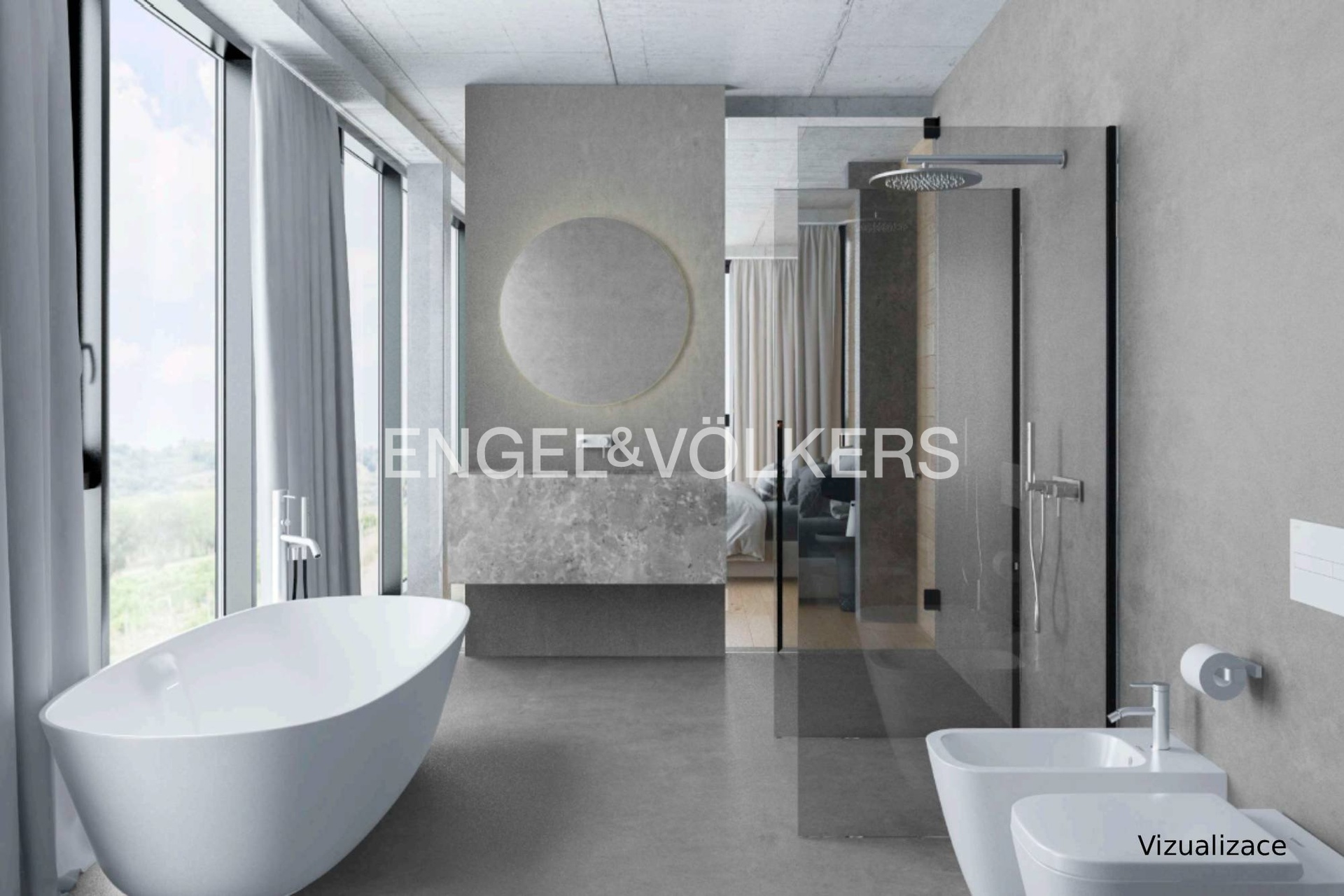 Dominantou bytu je prostorná terasa o velikosti 135 m², přístupná přímo z interiéru, která nabízí dechberoucí výhledy na všechny světové strany. Otevírají se odtud pohledy na park Cibulka, Vidouli i klidnou vilovou zástavbu Košíř. Díky své poloze a orientaci poskytuje byt výjimečné světelné podmínky po celý den.