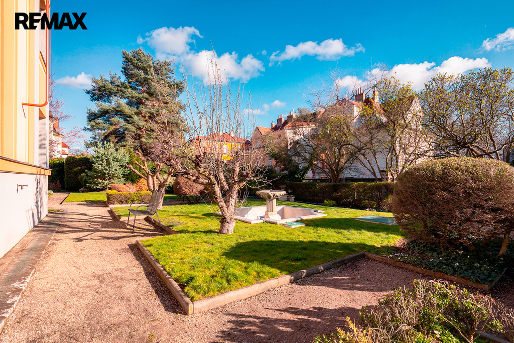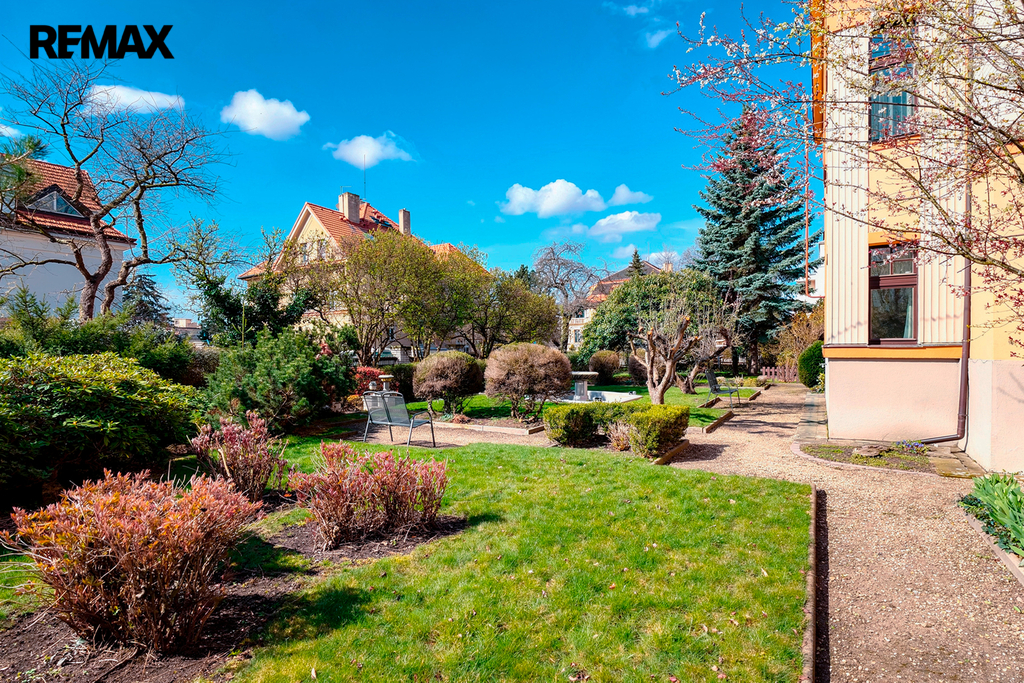 Zahrada je navržena ve stylu anglického parku. Pozemek o výjimečné rozloze nabízí absolutní klid uprostřed metropole. Vzrostlé stromy poskytují soukromí, nasvícená kašna s fontánou, dřevěný altán a rozlehlé terasy vytvářejí dokonalou kulisu pro zahradní slavnosti či bezpečné hry dětí.